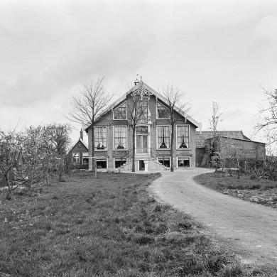 Boerderij, tweede kwart 19e eeuw met vlechtingen in de puntgevel en rieten wolfdak. Vensters met zes- en vierruitsschuiframen.