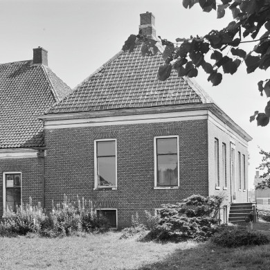 Grote boerderij fraai gelegen aan de rand van het dorp Ten Boer. Voorhuis onder zadeldak tussen afgeknotte topgevels. Smalle vensters in de voorgevel.