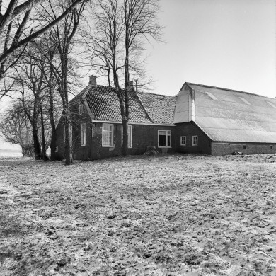 Op omgracht terrein (borgterrein van v.m.borg Takkenborg) gelegen BOERDERIJ met in de binnenhoek onderkelderd voorhuis onder zadeldak met wolfeind boven de voorgevel. Hoofd- en bijschuur rietgedekt.