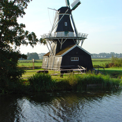 Rogge- en pelmolen, gebouwd in 1840, enig overgebleven molen in deze gemeente aan het Damsterdiep. Conische bakstenen romp.