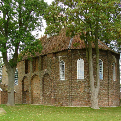 Ned.Herv.Kerk. De kerk bestaat uit het koorgedeelte van de kerk van het Benedictinessenklooster Germania, uitwendig veelzijdig, inwendig halfrond gesloten met rondstaafversiering lange de vensternissen. De noordmuur geleed door nissen op kolonetten met rijk versierde kapitelen. In de kerk 17e eeuwse preekstoelkuip met trap, achterschot en klankbord; koperen lezenaar. Orgel met een klavier, in 1873 gemaakt door R. Meijer. Mechanisch smeedijzeren torenuurwerk, 17e eeuw.