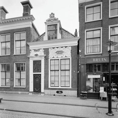 PAND zonder verdieping met rechte kroonlijst. Weelderig gebeeldhouwde cartouche met 1740 en opzetstuk boven de omlijste deur. Ook de dakkapel draagt nog een gesneden bekroning.
