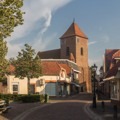Herv. kerk (St. Joris). Eenvoudige, laatgotisch gebouw, bestaande uit een schip van drie traveeën met driezijdig gesloten koor; een smalle noordelijke zijbeuk en een zware westelijke toren, alles XVI. Overkluizing met ribgewelf van na de zware schade door de cycloon van 1925, toen een ingrijpende restauratie plaatsvond. In de spits gelui van drie klokken, waarvan één van H. Berman, 1608, diam. 112,4 cm en twee moderne klokken. Mechanisch torenuurwerk J. van de Kerkhof, Aarle-Rixtel, later voorzien van elektrische opwinding.