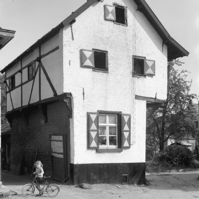 Sterk gewijzigd huis, blijkens kruiskozijnen en consoles op de verdieping mogelijk ten dele van vakwerk, XVII e.v.