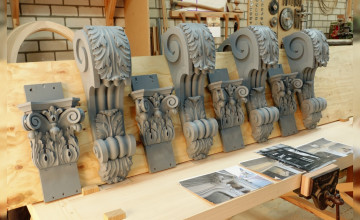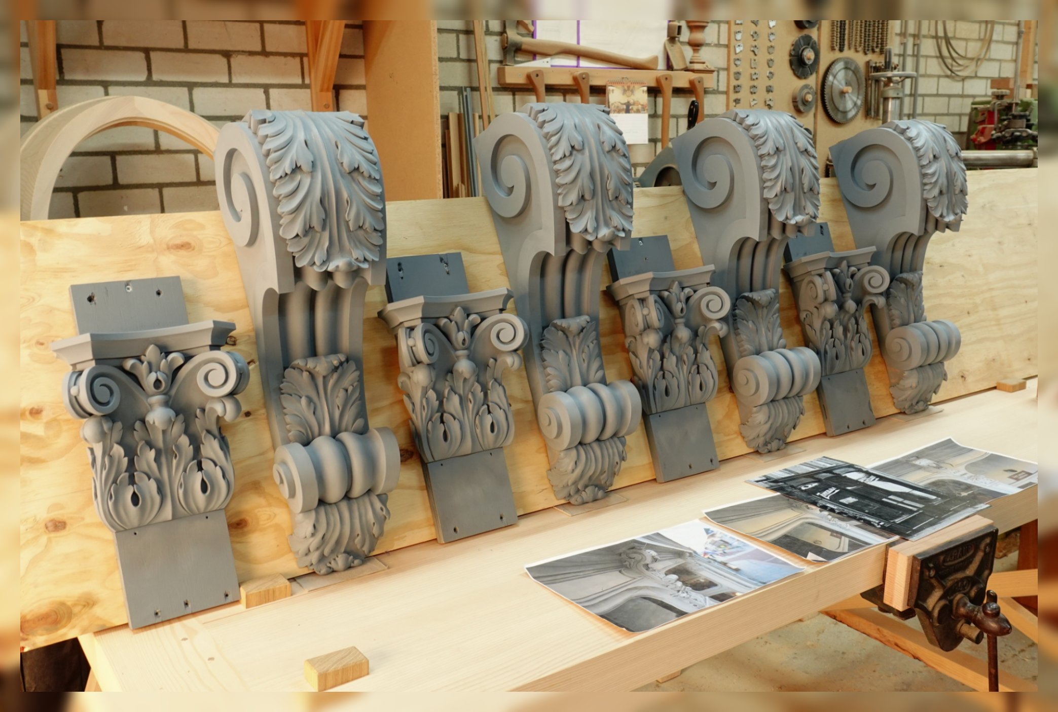 Open afbeelding in gallerijHandgesneden kapitelen en consoles tbv een monumentale winkelpui en 's-Hertogenbosch.