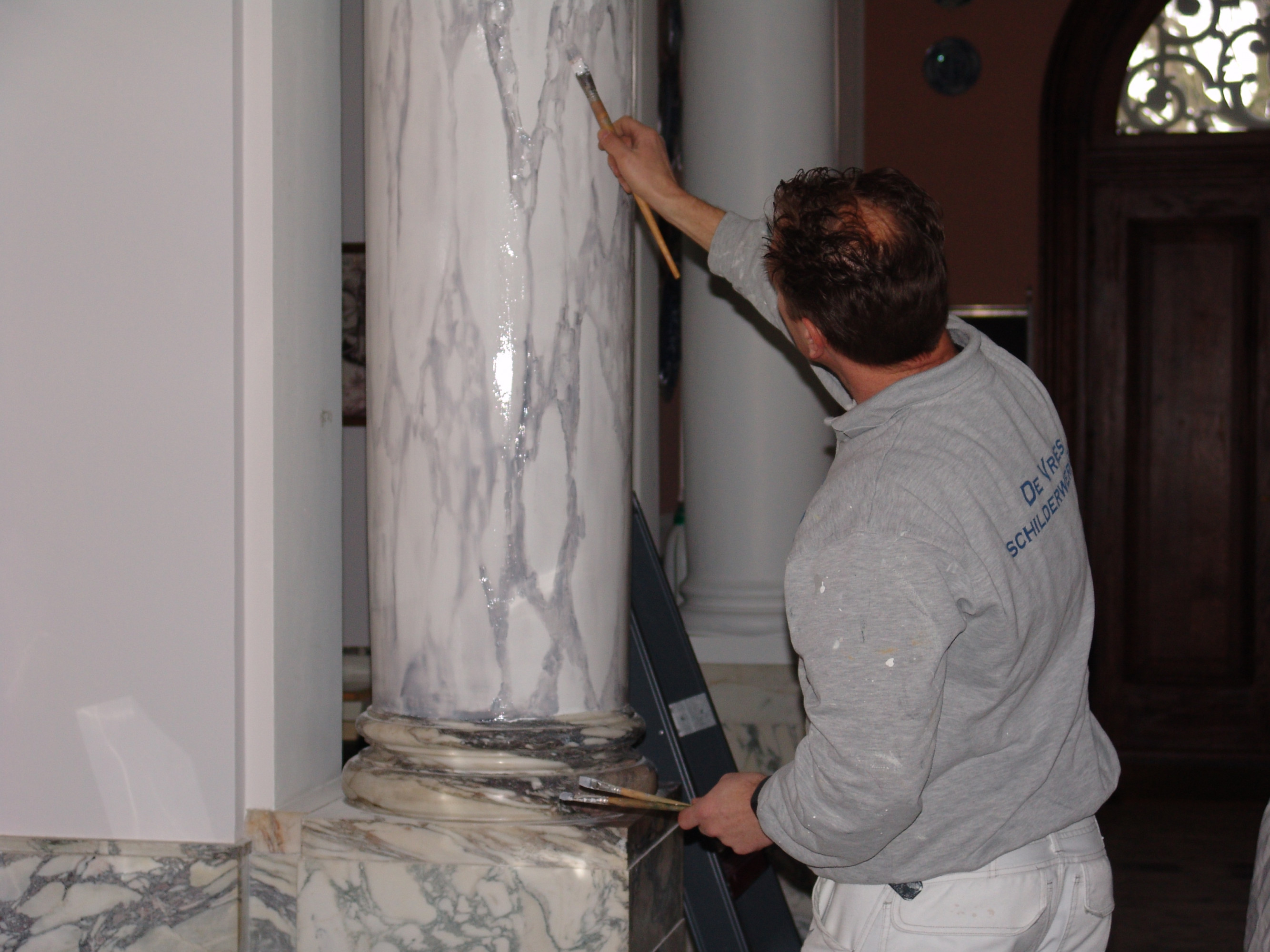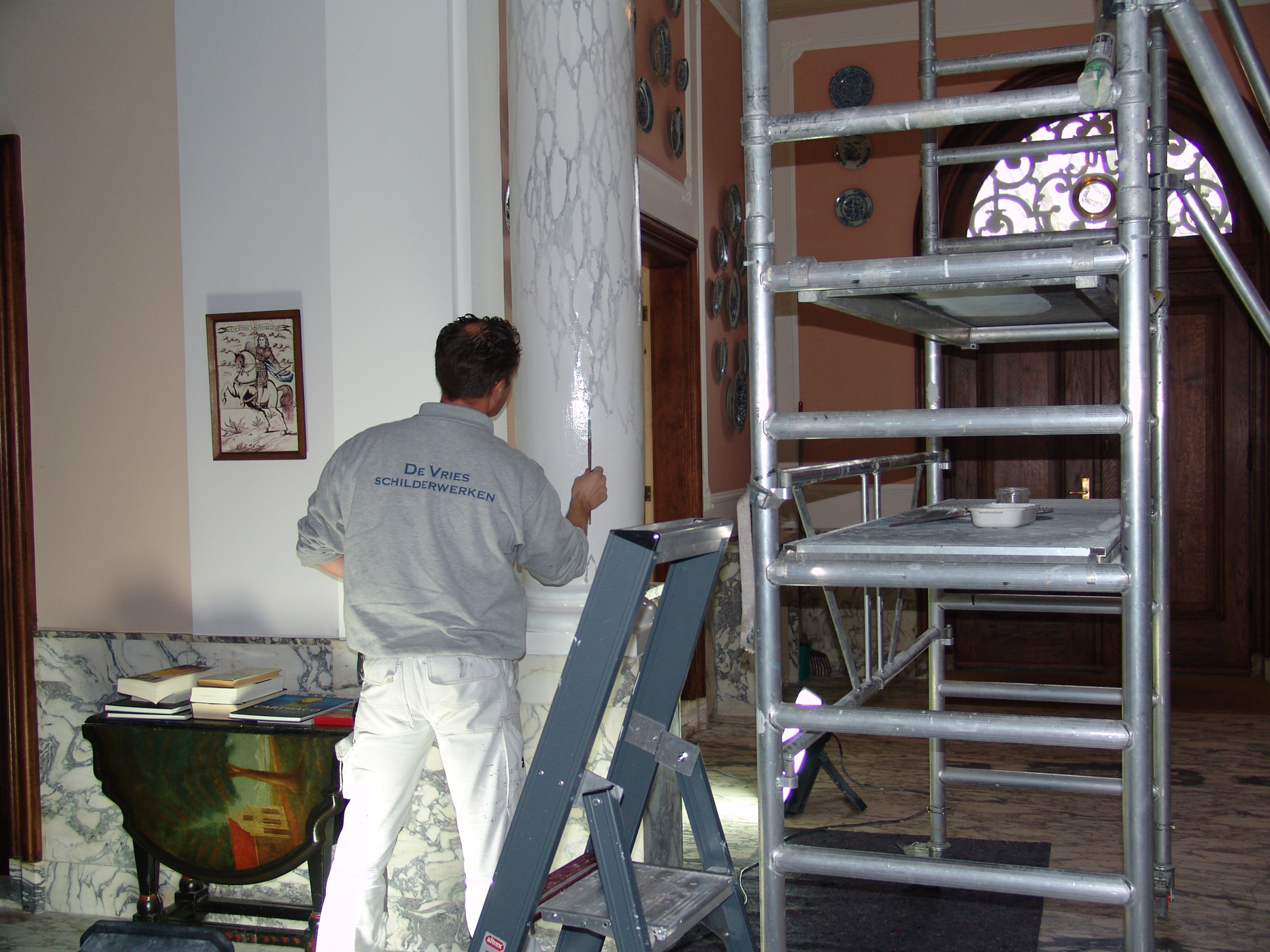 Oude schilderstechnieken, hout - en marmerimitaties en vergulden. De Vries Schilderwerken is een klein traditioneel schildersbedrijf dat alle facetten van het schildersvak tot in de puntjes beheerst. Vakmanschap is de basis van ons werk en dit zorgt voor een resultaat van de hoogste kwaliteit.In hoofdzaak houden wij ons bezig met onderhoudsschilderwerk voor particulieren, maar ook bedrijven en aannemers behoren tot onze vaste klanten. Onze activiteiten concentreren zich vooral op de regio De Ronde Venen en omstreken.