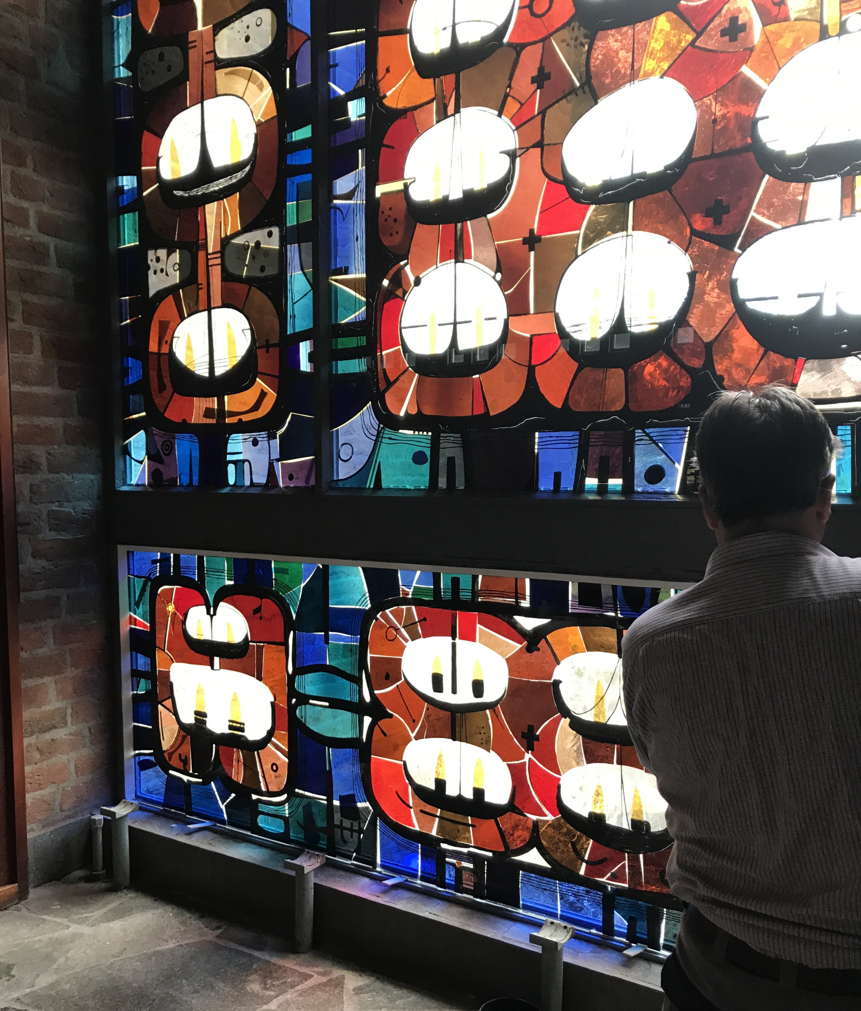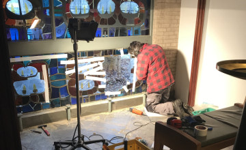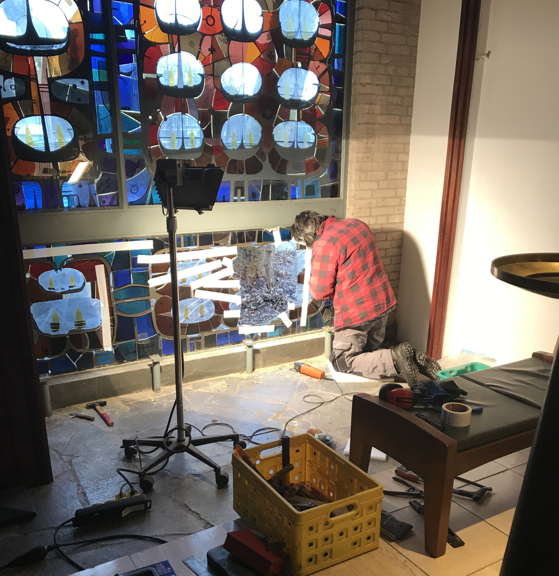 Open afbeelding in gallerijRestauratie glasappliqué H.-Sacramentskerk Uithoorn, was door vandalisme ernstig beschadigd