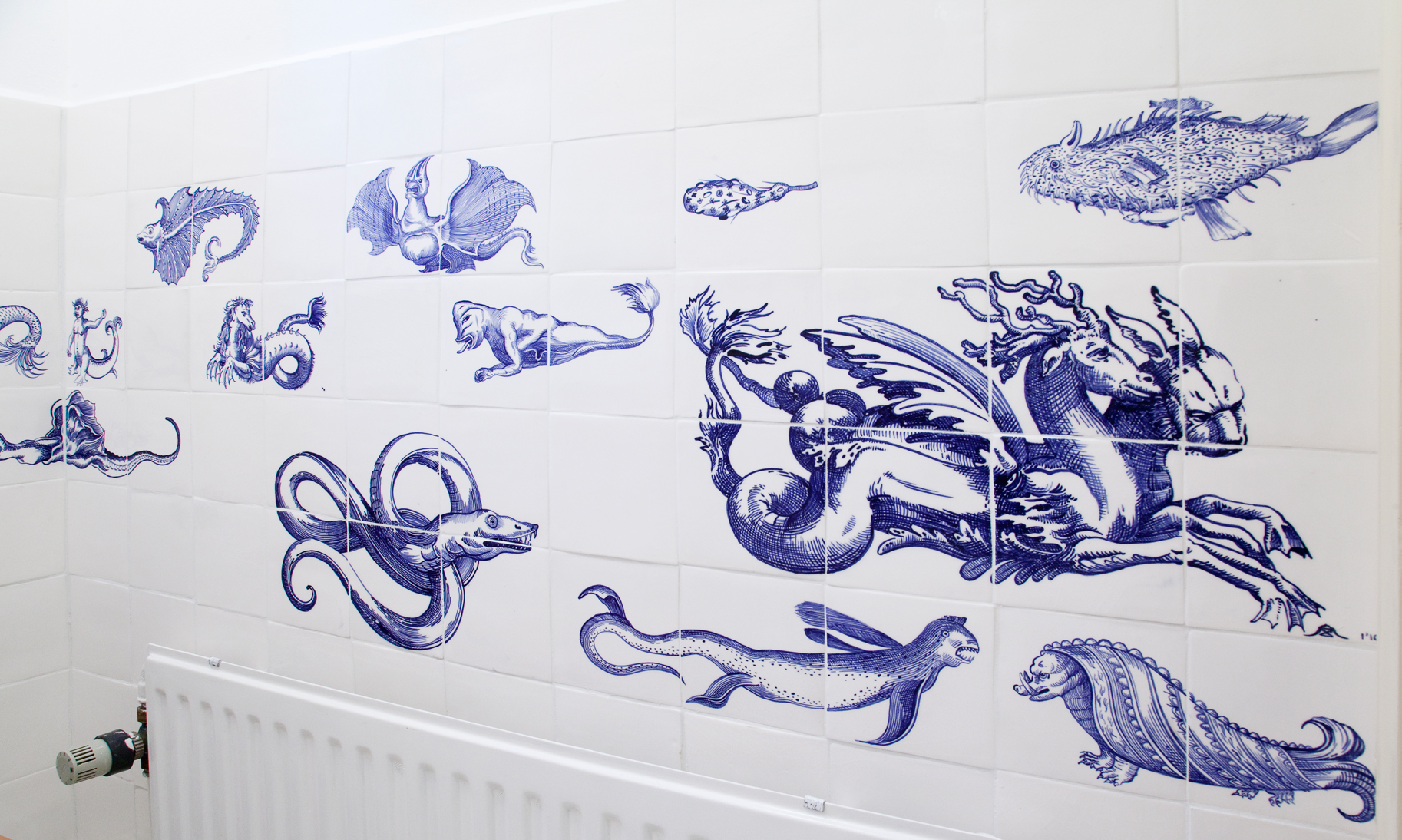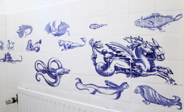 Ontwerp en uitvoering van op maat gemaakte, handgeschilderde tegels en tableau's.