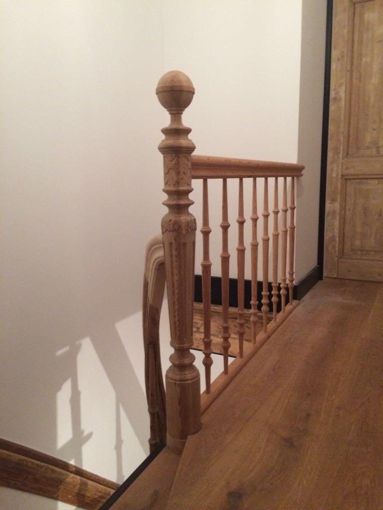 Open afbeelding in gallerijVoor een monumentaal pand in Groningen heb ik deze baluster en traphek gemaakt en de leuning verlengt naar de baluster.