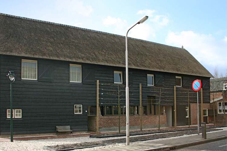 Open afbeelding in gallerijDe monumentale vloedschuur en de boerderij werden beiden gerestaureerd en getransformeerd tot 5 woningen. Bij het ontwerp van deze woningen is optimaal gebruik gemaakt van het karakter van de bestaande ruimtes.