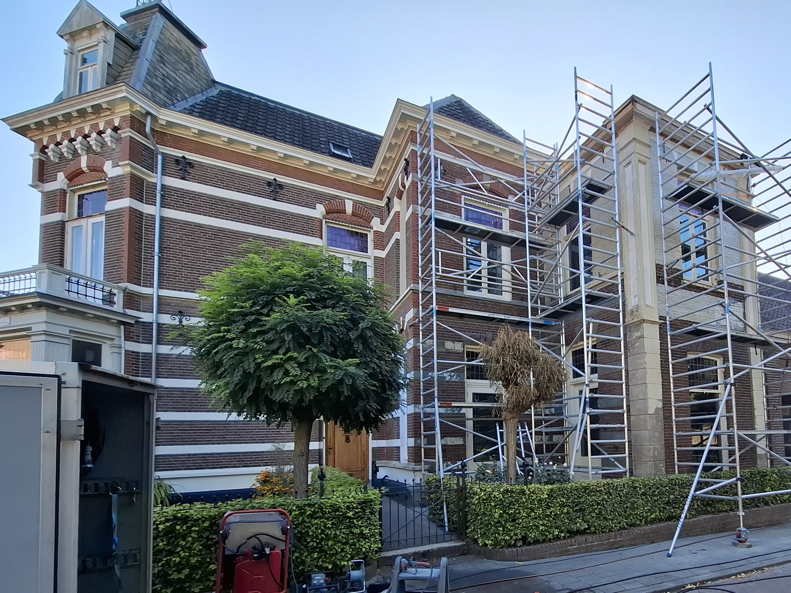 Open afbeelding in gallerijEkoto te Etten-Leur, schadevrij reinigen van historische gevel met behoud van kwetsbaar metselwerk. -