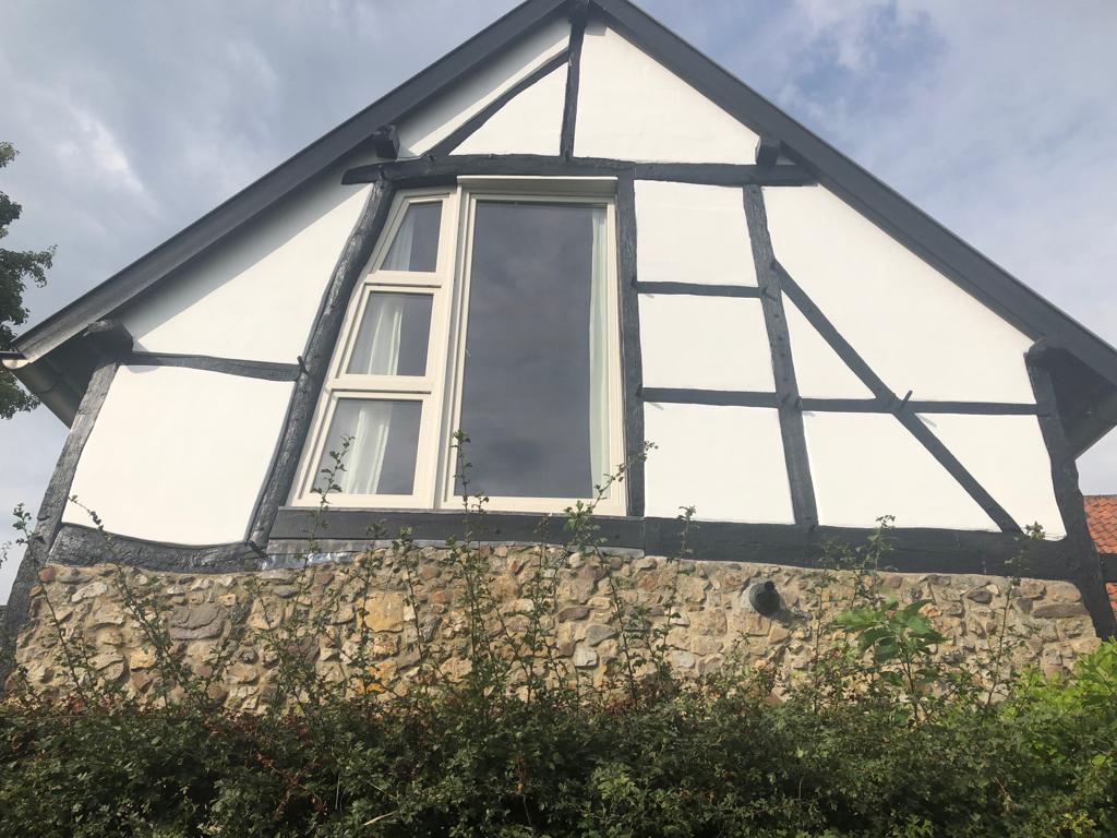 Open afbeelding in gallerijRestauratie voorgevel hout, houtvervanging, steen, schilderwerkzaamheden vakwerkhuis.