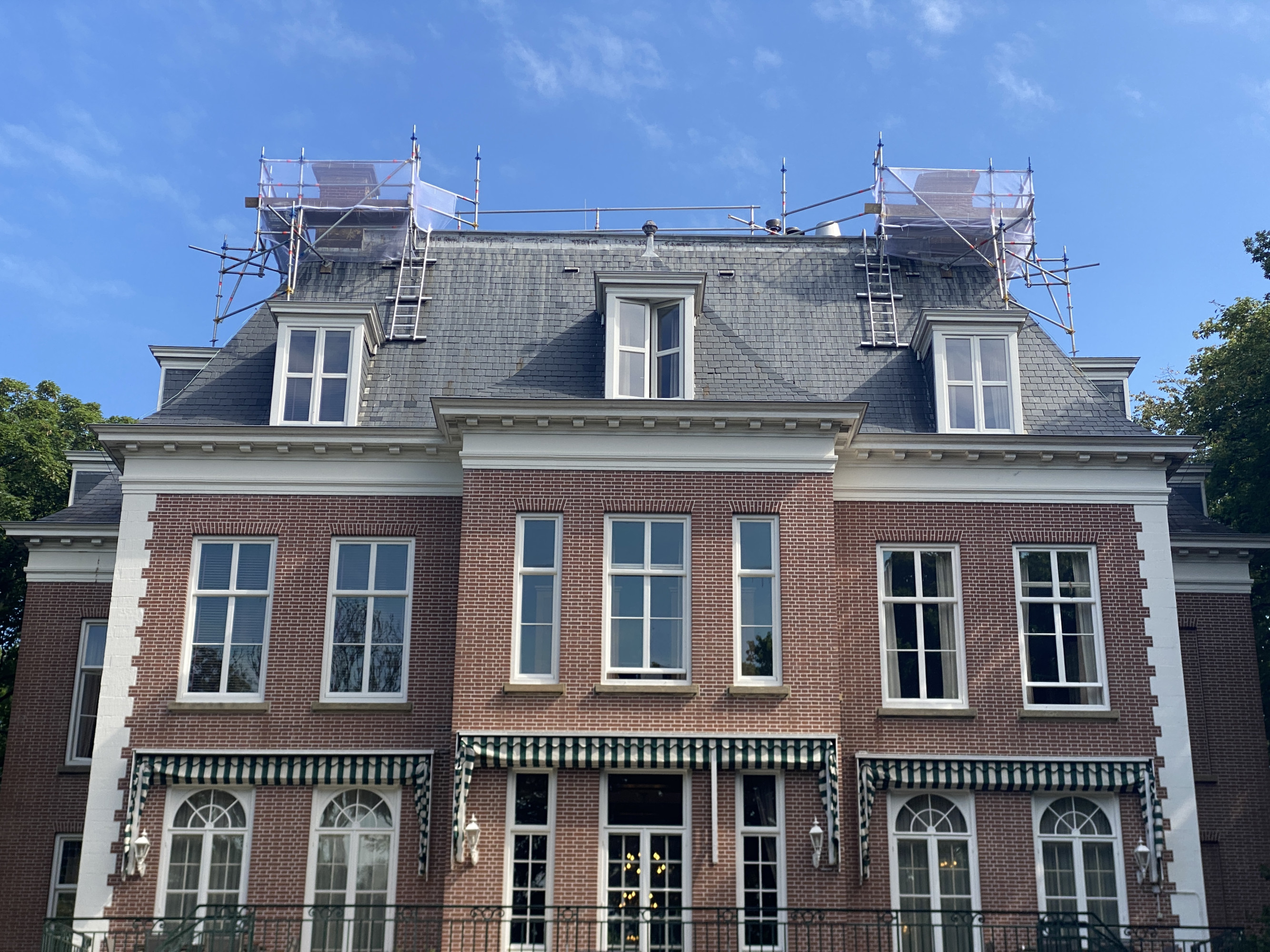 Open afbeelding in gallerijIn 2025 restaureerde Vis Architecten de vier zandstenen schoorstenen van de Australische Residentie in Den Haag. Met een historisch verantwoord ontwerp en zorgvuldige begeleiding van begin tot eind zijn ze in volle glorie hersteld.