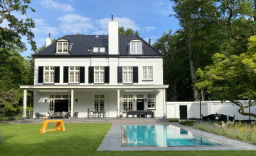 Open afbeelding in gallerijVis Architecten restaureerde villa De Gijselaar en voegde een overdekt terras toe. Het project won de Wassenaarse Monumentenprijs 2017 als voorbeeld van zorgvuldig herstel van historische details en het harmonieus toevoegen van eigentijdse voorzieningen.