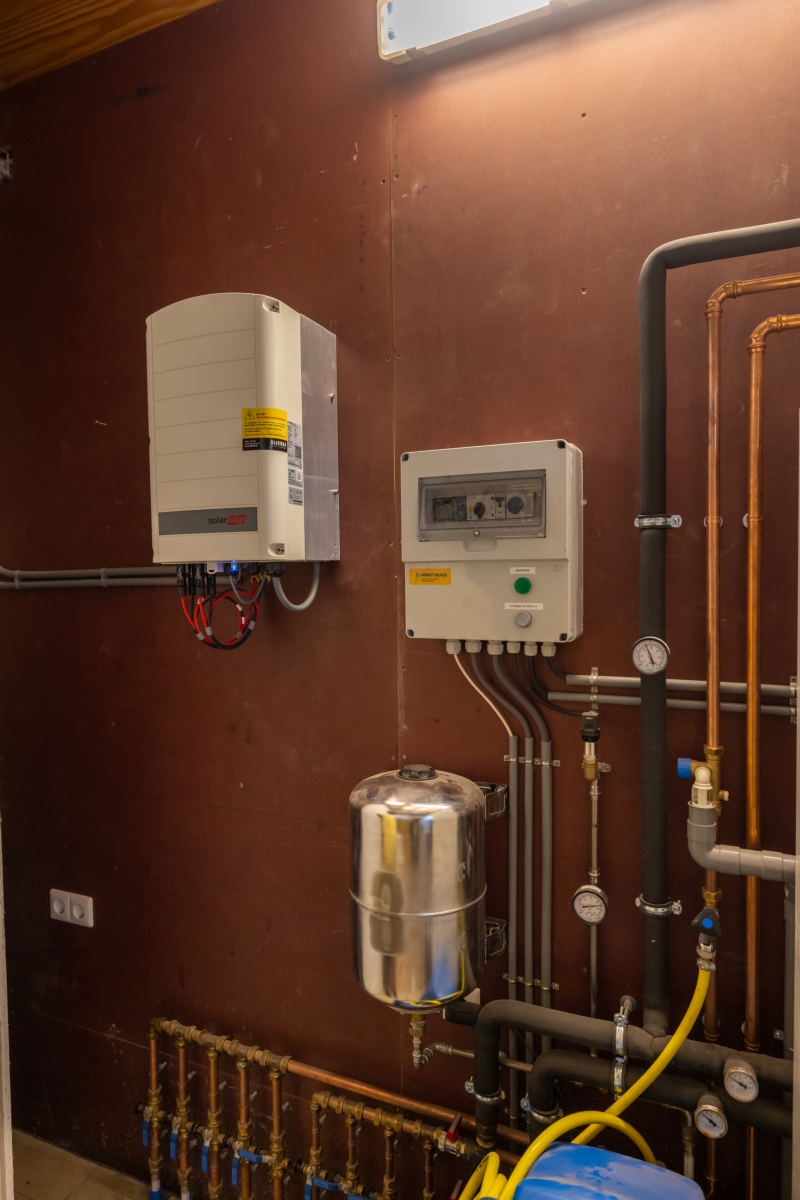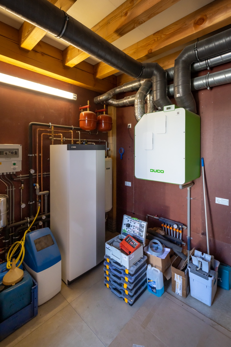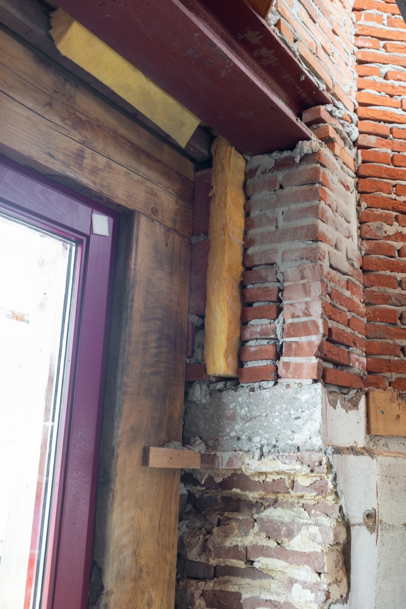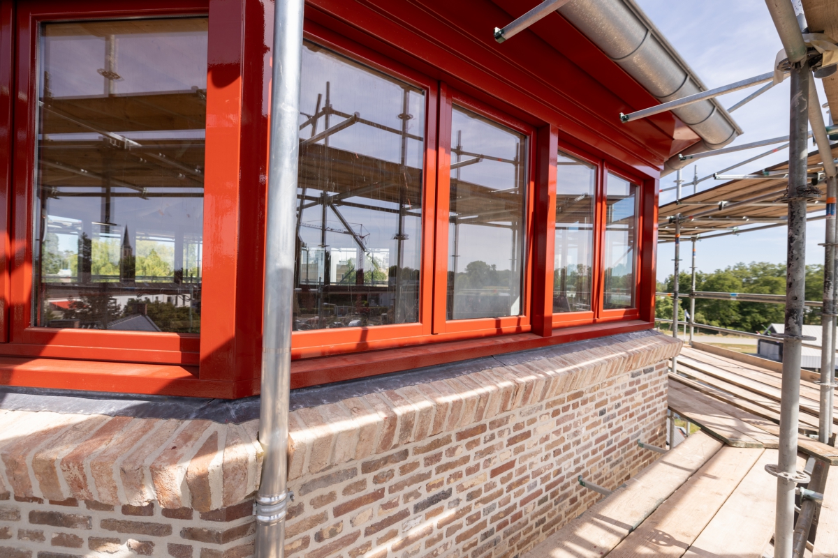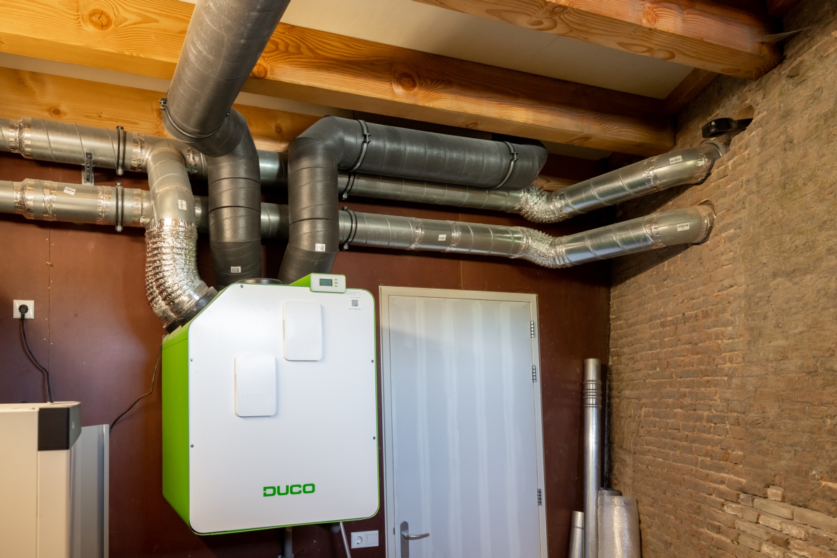 De betonnen vloer op de begane grond is voorzien van vloerverwarming en geïsoleerd met 20 centimeter tempex en dubbele wapening. Het roevendak op de romp is volledig geïsoleerd met PIR en de vloer op de begane grond is geïsoleerd met tempex. De ramen zijn voorzien van Stolker monumentenglas. ‘Dat is dubbel glas van 8 mm dikte, de buitenste glaslaag bestaat uit getrokken glas. Het ziet er goed uit en blijft ook goed. Het is heel netjes met monumentenkit in de kozijnen gezet. Dat is veel beter dan die ouderwetse stopverf.’