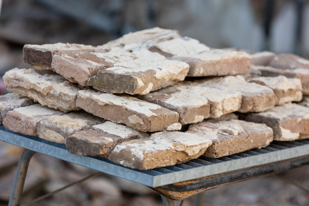 Paul heeft bij het restauratieproject niet alleen oog voor duurzaamheid, maar ook voor circulariteit. ‘Er zat in de molen zo’n 15 ton aan stalen balken van zeer goede kwaliteit, geproduceerd door Thyssen en Krupp. Die balken wegen per stuk 1000 kilo! Negen balken behielden een functie in de molen, maar we moesten er zes verwijderen. We hebben er een goede afnemer voor gevonden, die er een nieuwe bestemming voor had.’ Paul springt zuinig met alle materialen om. ‘We hebben voor voldoende daglicht op de 1e en 2e verdiepring ramen uitgehakt. Dat leverde zaken vol vechtformaten (steensoort, red.) uit 1798 op. Een deel hebben we gebruikt voor de opbouw van de derde verdieping. Er staan hier nu nog 12 zakken, die ik nog schoon moet bikken. Daarna kunnen ze weer gebruikt worden voor een ander restauratieproject.’ Er is een levendige handel in tweedehands bouwmaterialen. Paul weet na al die jaren redelijk goed de weg. ‘Je hebt de bekende handelaren, maar er zijn adresjes waar je goedkoper uit bent. Voor bijzondere bouwmaterialen is het bouwdepot van de Monumentenwacht hier in Gelderland een vondst.’
