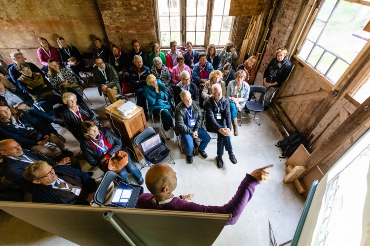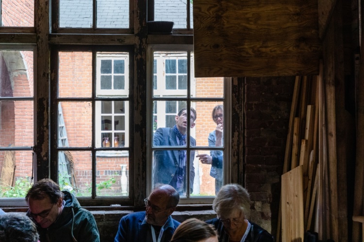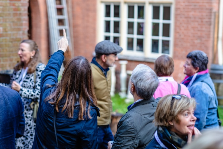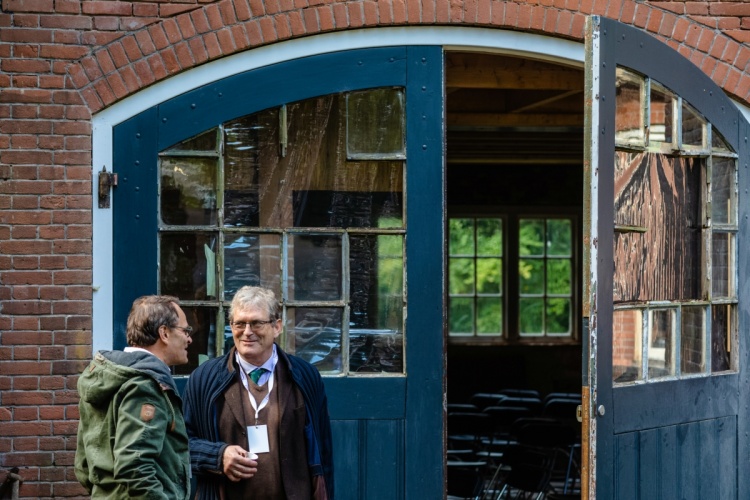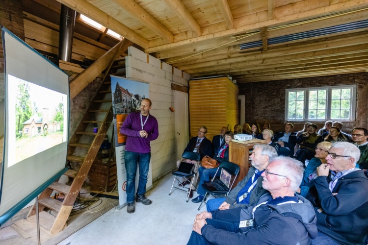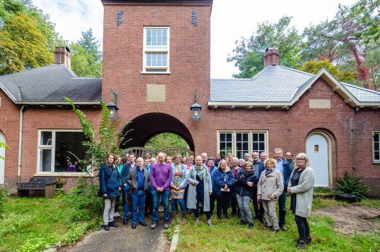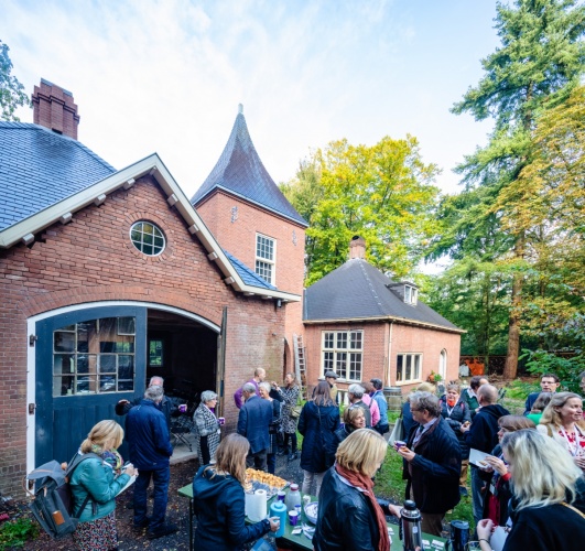 Na de koffie en de eerste informele gesprekken zijn er twee presentaties. Anne van Rooij vertelt over de geschiedenis van landgoederen en buitenplaatsen binnen de gemeente Utrechtse Heuvelrug. Daarna volgt een presentatie van gastheer Fons Bardoel, die samen met zijn partner Sandra van Gaalen eigenaar is van het Poortgebouw. Er barst een lachsalvo los, wanneer Fons vertelt dat hij en Sandra op zoek waren naar een ‘klushuis’. Dat is een understatement. Hoewel er al heel veel werk verzet is, begrijpen de aanwezige community leden als geen ander hoeveel er nog gedaan moet worden. Maar ze weten ook dat een eigenaar in staat is om daar doorheen te kijken. De bril van eigenaren is gericht op die droom aan de einder: zo gaat het worden! Dat herkennen ze allemaal.