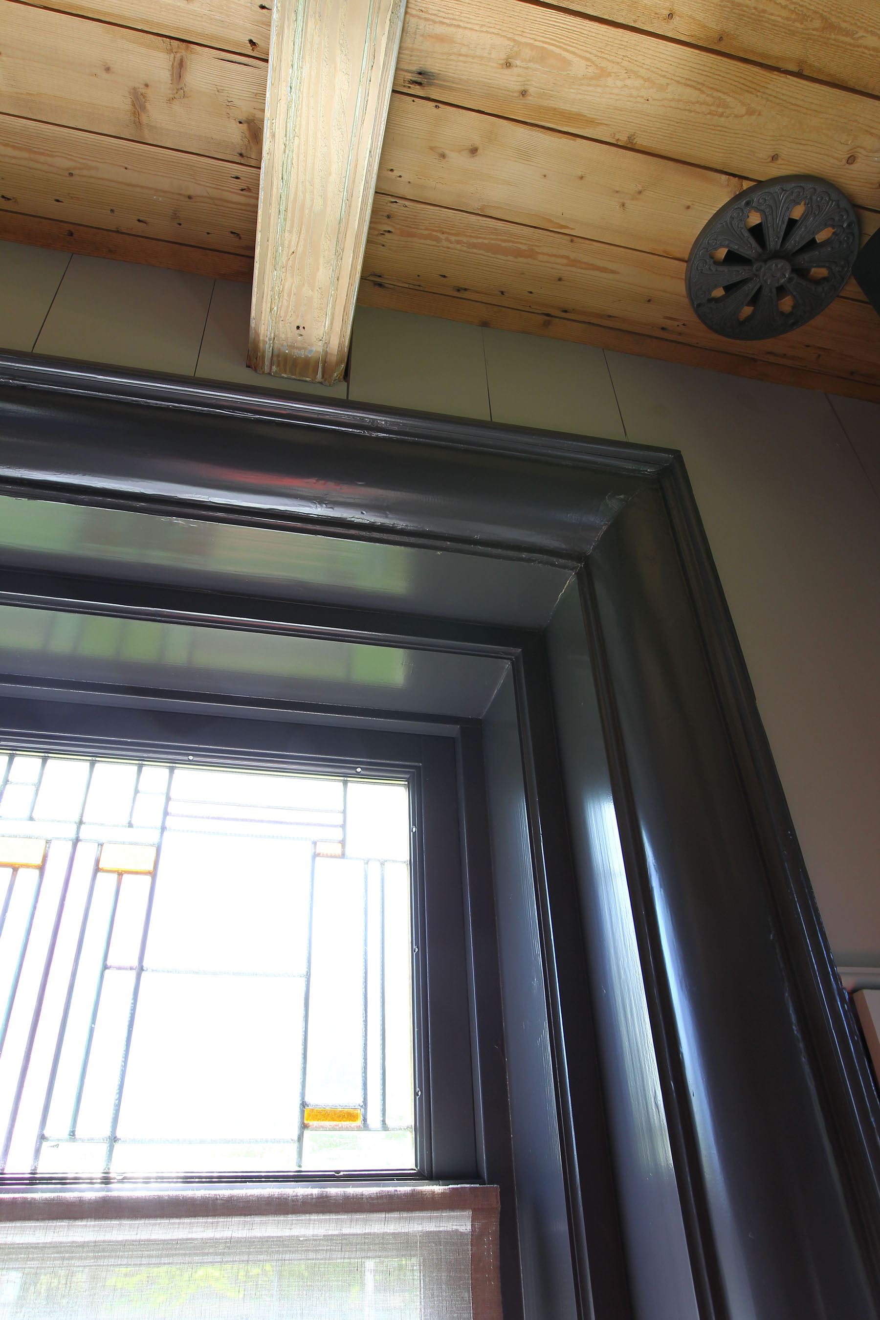 Naast isoleren is ook ventileren van belang. En ook hier werd gedacht aan hergebruik van oude materialen. Paul: ‘We hebben er een balansventilatiesysteem in gebouwd. Daarvoor gebruikten we de roosters die al in de rookkanalen van het pand zaten. En we vonden er nog een paar bij een antiquair. Zo hebben we een nieuw systeem toch mooi in weten te passen.’ Alle stenen die aan de buitenzijde gebruikt werden, zijn origineel. ‘Allemaal een voor een afgebikt en afgeschuurd. De muren zijn gestraald en daarna gevoegd met een snijvoeg. Boven de ramen zaten gele en grijze stenen, die noemen we hier hanenkammen. Die stenen waren uitgesleten en verkleurd. We hebben ze eruit gehaald, weer mooi schoon gemaakt en gehalveerd weer teruggeplaatst. Daarboven zaten tegeltjes met bloemmotieven. Er was er eentje stuk gegaan, die hebben we vervangen door een weerbestendige sticker van het bloemmotief. Gemaakt door een vriend van ons. Een heel prima oplossing, je ziet er niets van!’ Ook de beglazing van het huis moest verduurzaamd en gerestaureerd. Mary: ‘Het glas in lood boven alle ramen is behouden. Het lood moest wel overal vervangen worden. Alle kozijnen zijn tot op de millimeter nauwkeurig nagemaakt en is er is HR ++ glas (S Super +) in geplaatst.