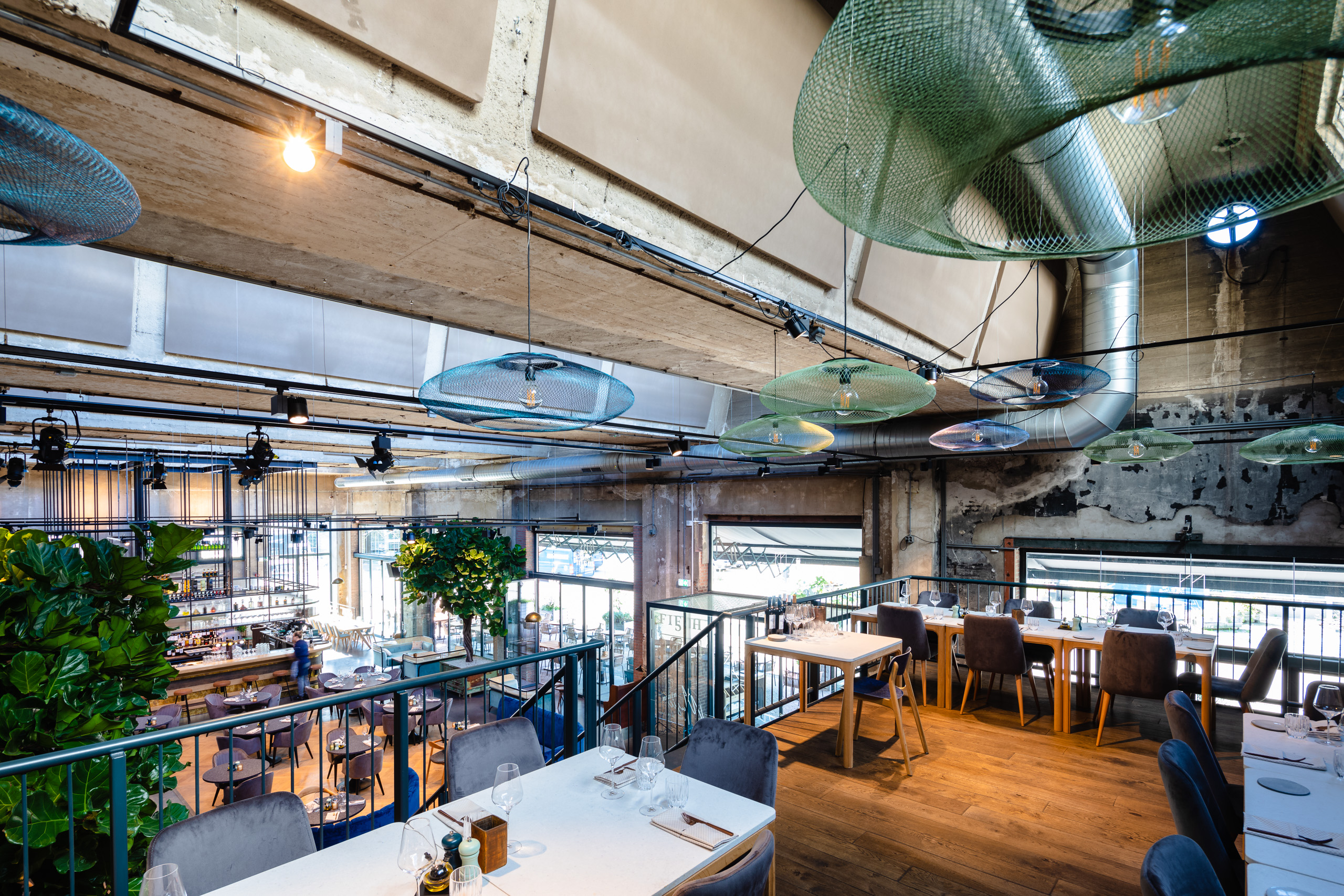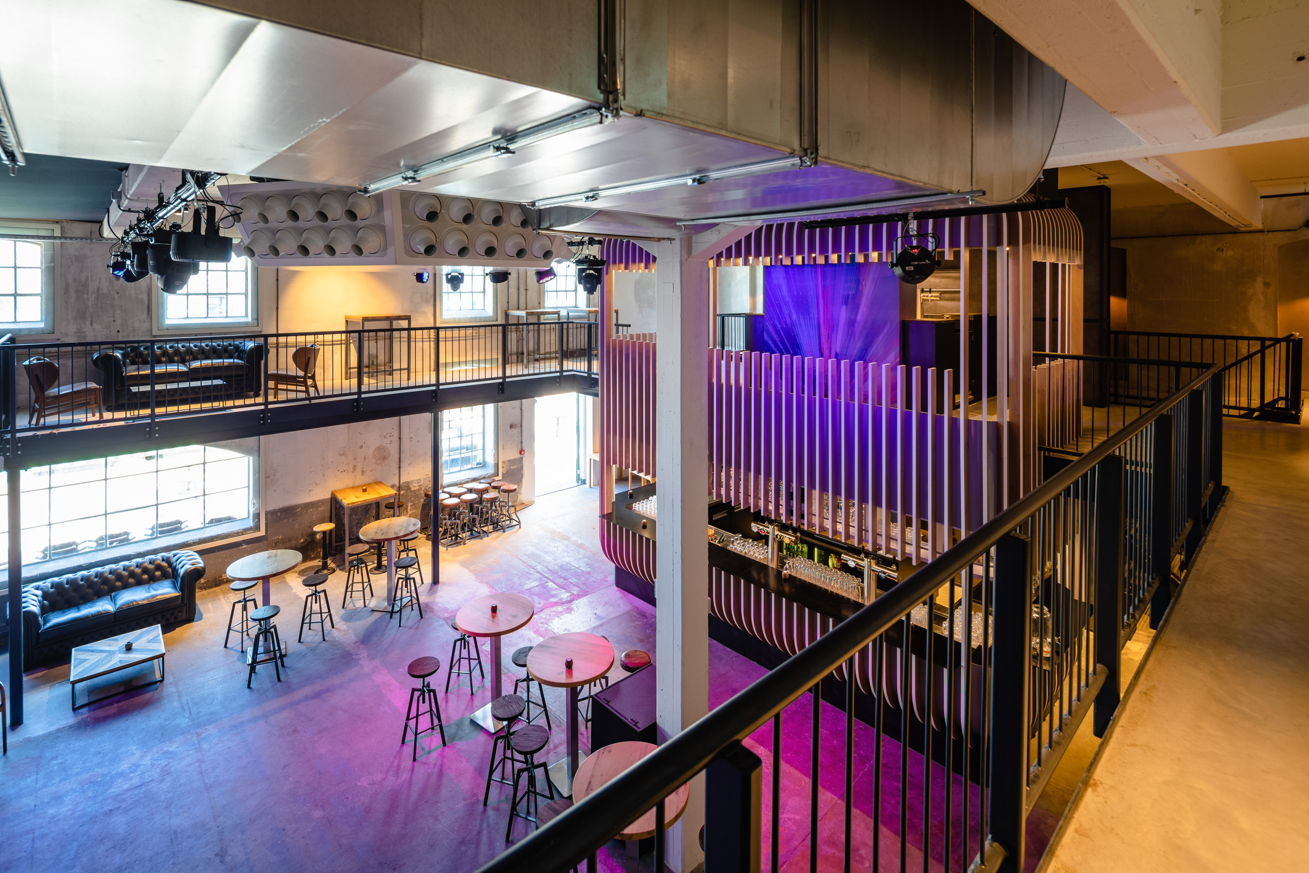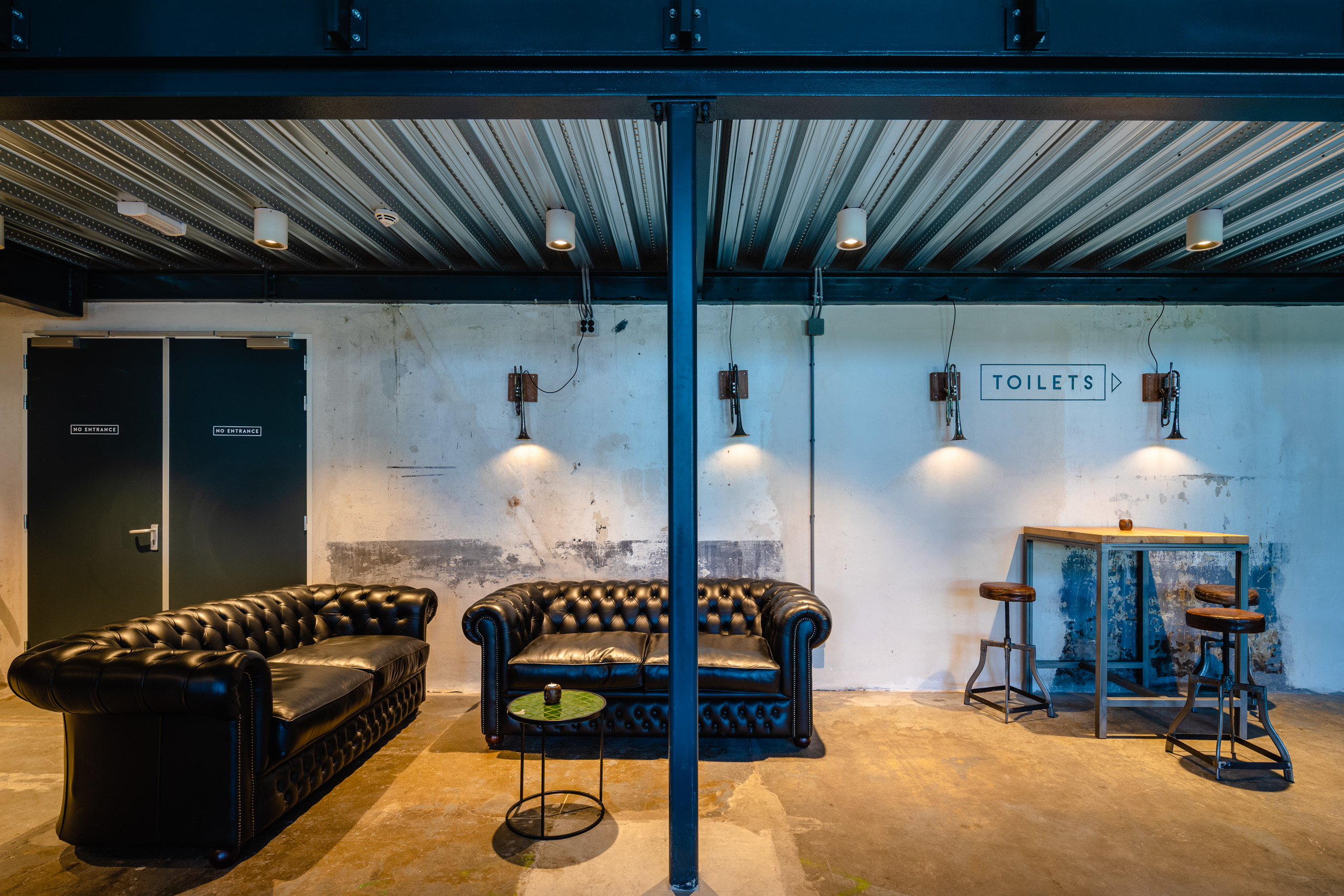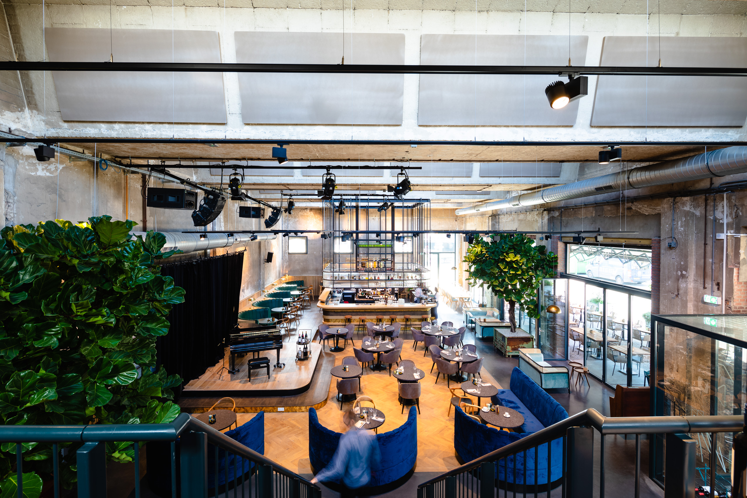 Opvallend vindt Malone ook de inrichting. ‘Het contrast tussen bijvoorbeeld de grove stenen muren met oude verflagen en de moderne fluwelen banken oogt heel gaaf.’ Toch ging het initiatiefnemer Van Stiphout bij de keuze voor het meubilair niet alleen om de ‘looks’; hij koos voor interieur van het Amsterdamse bedrijf PLANQ, mede vanwege hergebruik van materialen. ‘In de stoelen zijn oude uniforms van het leger verwerkt en in de grijze tafels kleding van ABN AMRO Bank. Dat we een oude fabriek omtoveren tot horecagelegenheid is duurzaam. Die vorm van duurzaamheid voeren we door in het nieuwe meubilair.’