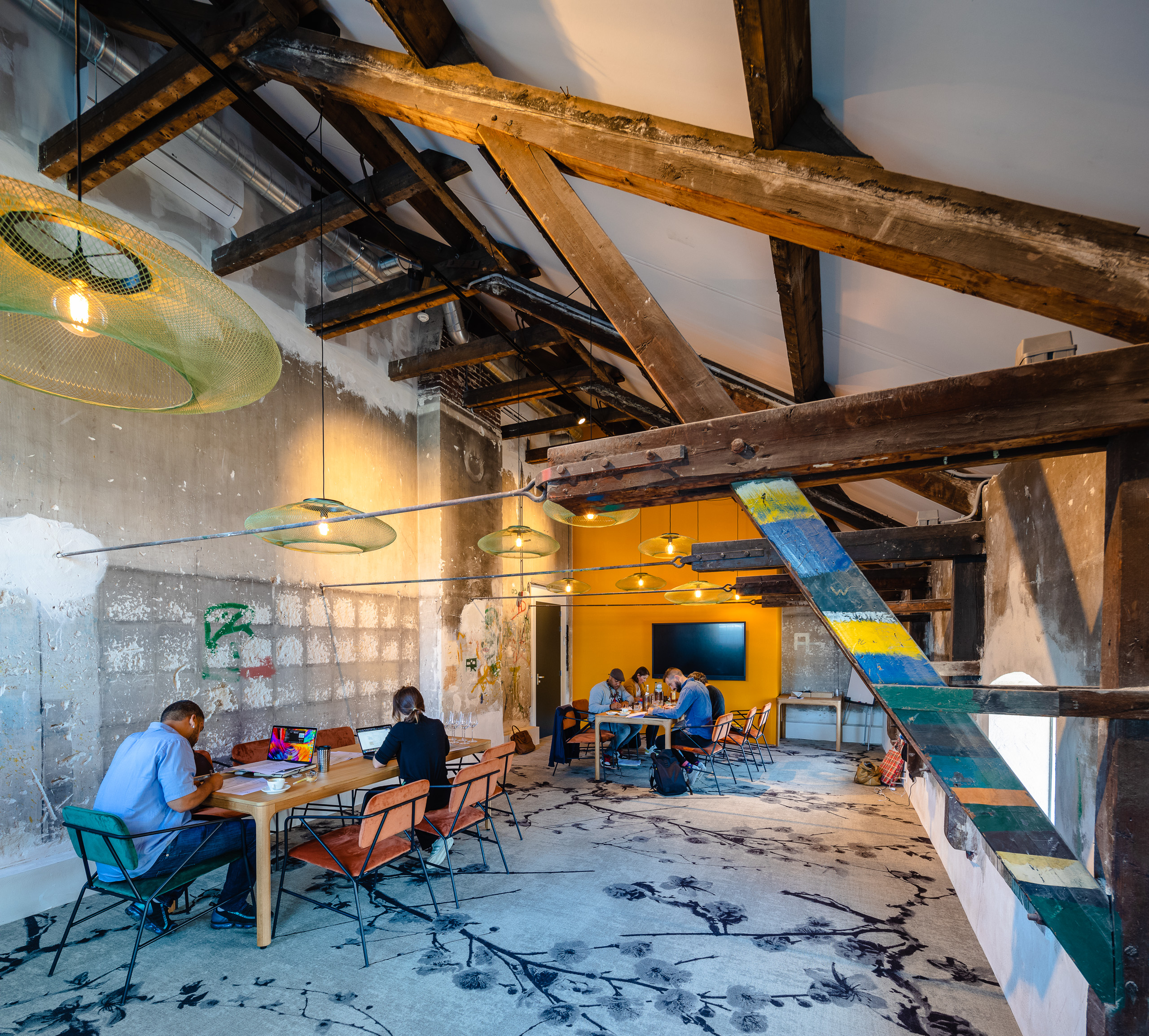 Alex Malone is een van de gebruikers van ‘The Room’. ‘Een goede vibe’, heeft de oude gasfabriek volgens haar. ‘Het is oud, industrieel, open en licht. Ik voel me er alsof ik in New York of Parijs ben.’ Malone kan het weten, want met haar platform ‘Meetings in the sun’ heeft zij zich gespecialiseerd in plaatsonafhankelijk werken, in Nederland en ver daarbuiten. ‘Het platform inspireert mensen om locaties te kiezen die passen bij het werk dat ze doen. Dat kan iedere dag anders zijn. Brainstormen doe ik bijvoorbeeld op een andere plek dan schrijven. The Room in Fifth blijkt een mooie plek voor ‘the mastermind’ die ik iedere zes weken organiseer voor ondernemers die elkaar willen versterken met kennis en netwerk.’