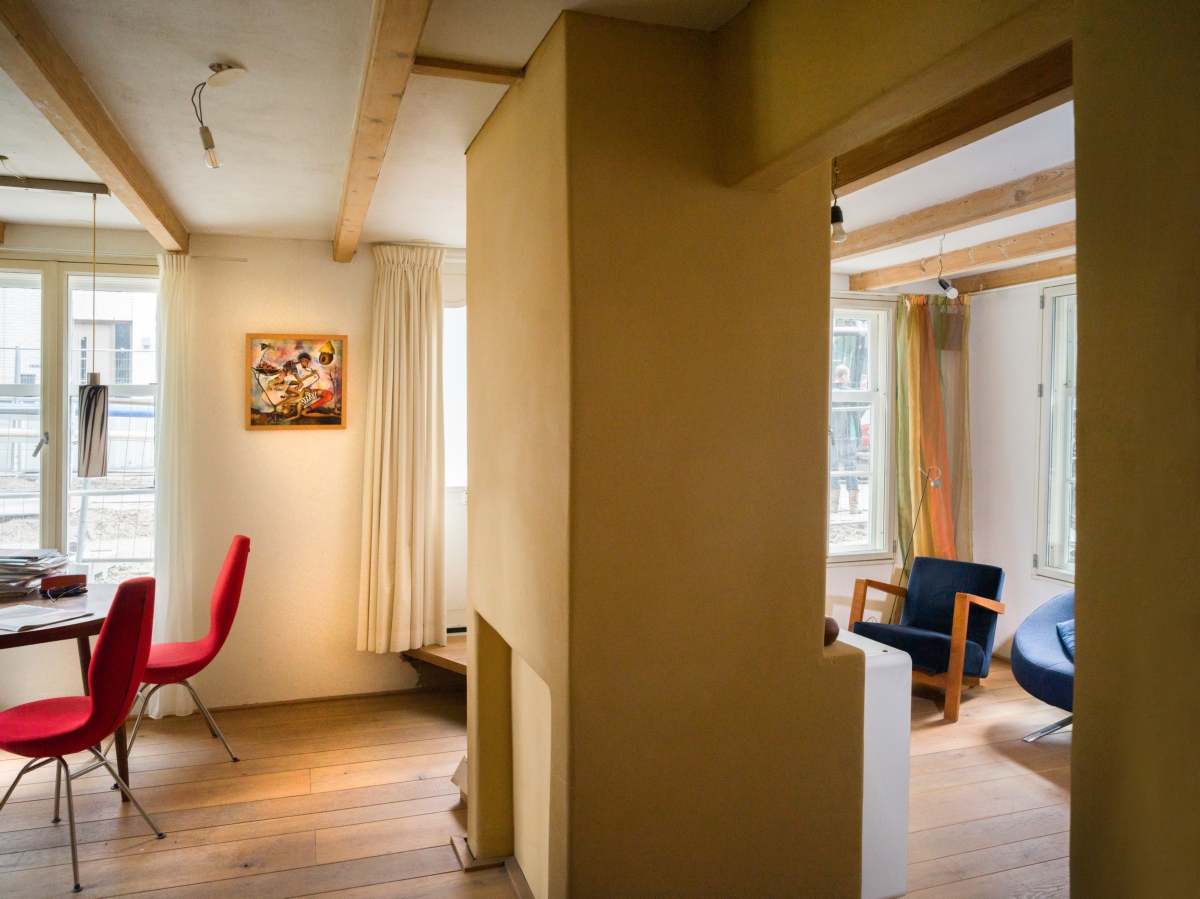 De troef van het energiezuinige, gasloze monument is de wandtemperatie. De warmtepomp (de Elga van Techneco) past daar goed bij en maakte het huis gasloos. ‘Wandtemperatie is het verwarmen van de wanden van de buitengevels. Er lopen leidingen door de wanden en daar loopt warm water doorheen. Het verwarmt niet alleen naar binnen toe, maar ook een beetje naar buiten. Daardoor blijft de hele constructie boven het dauwpunt en wordt vocht van binnen naar buiten afgevoerd. De oppervlaktewarmte van de wanden zorgt voor een comfortabele gevoelstemperatuur. Door het grote oppervlak van de verwarmde wanden is de warmtepomp heel effectief: met een lage aanvoertemperatuur kan ik het huis verwarmen.’