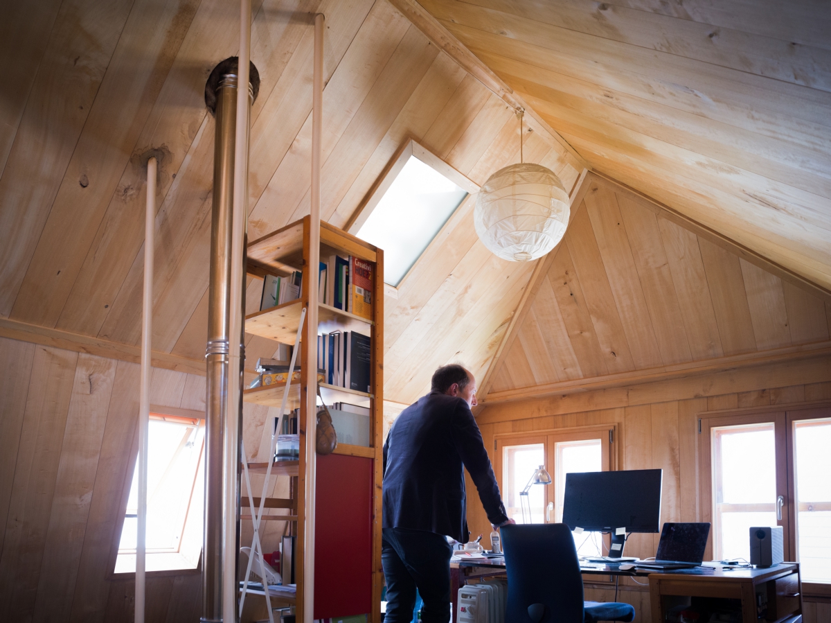 De energiezuinigheid kwam tot stand met advies van de Duitse architect Martin Breidenbach, met als belangrijkste onderdeel de wandtemperatie gecombineerd met een warmtepomp. ‘Het dak en de muren zijn geïsoleerd, er is een zonneboiler die wordt gevoed door zonnecollectoren, in ieder raam zit hr++glas en voor de schuiframen zijn ramen inclusief kozijnen geplaatst, waardoor er een vorm van triple glas ontstaat’, somt Bos op.