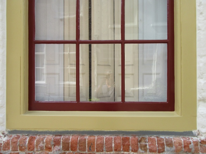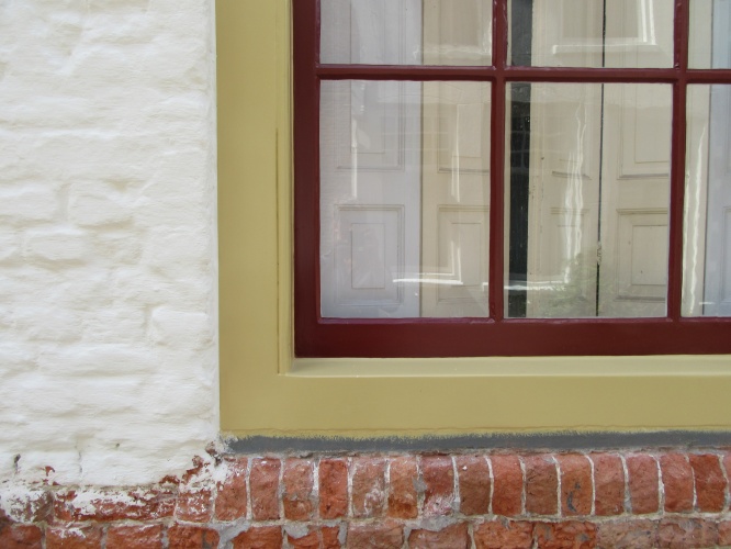 ‘We doen veel zelf. Momenteel wordt de voorkant geschilderd, door een schildersbedrijf dat ervaring heeft in het werken met oude verven. Het is de eerste grote klus die we laten doen. Mijn man zet er zelf het nieuw bestelde monumentenglas in. De bakstenen voorgevel is in de jaren ’80 overgeschilderd met waterdichte latex. Dat leverde vochtproblemen op, omdat de gevel niet meer kon ademen. Vocht uit de grond, dat in de dikke stenen muren zit, trok inmiddels op tot ongeveer borsthoogte.
