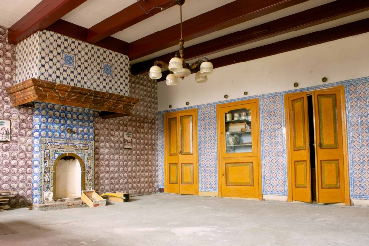 We hebben veel aandacht besteed aan de heerd in de zondagse kamer. De tegelwand is helemaal gerestaureerd. Een restaurateur in Friesland heeft de tegels waar nodig opnieuw beschilderd en geglazuurd. Die tegels werden nog een flinke kostenpost. Een aantal tegels moest vervangen worden door nieuwe… Dat was een tegenvaller, maar dat hoort ook bij zo’n proces. Ik kom uit de bouw, ik weet dat je bij dit soort projecten altijd wel iets tegenkomt waar je niet op gerekend had. Ik leg momenteel de laatste hand aan het gemarmerde schilderwerk bij de heerd. Mijn vader is al veertig jaar schilder, hij heeft mij geleerd hoe je zoiets doet. Dit hebben we toch maar even gedaan met elkaar! Daar ben ik best trots op!’