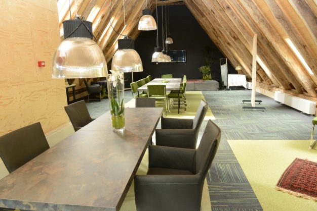 ‘Toen wij het complex erfden, hebben we eerst een jaar de mogelijkheden voor de toekomst overdacht. Ik kwam hier iedere dag even kijken. Ik wilde controleren of alle oude tegeltjes er nog waren. Je kon hier overal naar binnen lopen. Maar ik kwam hier ook om me de sfeer hier een beetje eigen te maken. Ik dronk hier dan een kop koffie en nam alles in me op. De oorspronkelijke kleuren – groen, tinten rood, okergeel- bevielen mij heel erg goed, die hebben we gehandhaafd. Ik ben altijd wel met interieur bezig geweest en vooral met kleuren. Mensen zijn vaak bang voor kleur, daar heb ik geen last van.’
