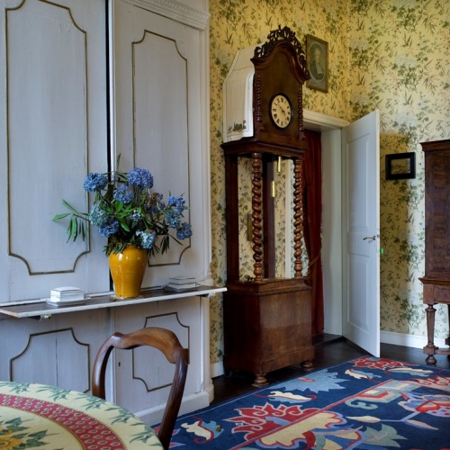 ‘De daglonerswoning is nu zo goed als klaar, die gaat nu in de verhuur. Verhuur levert inkomsten op die voor het onderhoud van het landgoed noodzakelijk zijn. Het grote landhuis gaan we subtiel splitsen. Een deel blijft beschikbaar voor de familie. Het deel met de representatieve ruimtes krijgt een multifunctionele bestemming. Er kan getrouwd worden, maar ook voor zakelijke bijeenkomsten is het dan zeer geschikt. Op de eerste verdieping van het landhuis komen twee short stay appartementen, die dan te huur zijn.’
