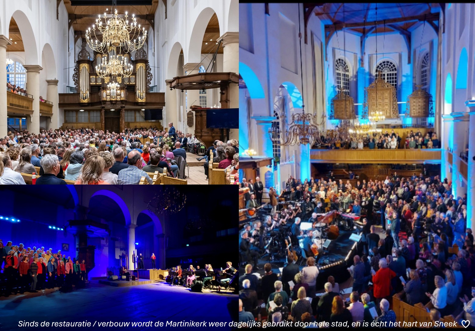De karakteristieke Martinikerk uit 1498 is na de verbouwing weer klaar voor de toekomst, als ontmoetingsplek voor alle inwoners van Sneek. Duurzaamheidsmaatregelen en nieuwe functies zijn met veel respect voor het monument gerealiseerd. Het ‘schip’ in de kleine kerkzaal, een echte eyecatcher, zorgt ervoor dat deze ruimte apart verwarmd kan worden en de leegstaande klokkentoren is getransformeerd tot kantoor. Bestaande materialen zijn hergebruikt, de ruimtes die dagelijks gebruikt worden zijn volgens de nieuwste normen geïsoleerd en alle installaties zijn zo ingericht dat de Martinikerk klaar is voor de transitie naar aardgasvrij. Op de nieuwbouw ligt een groen dak en zonnepanelen.