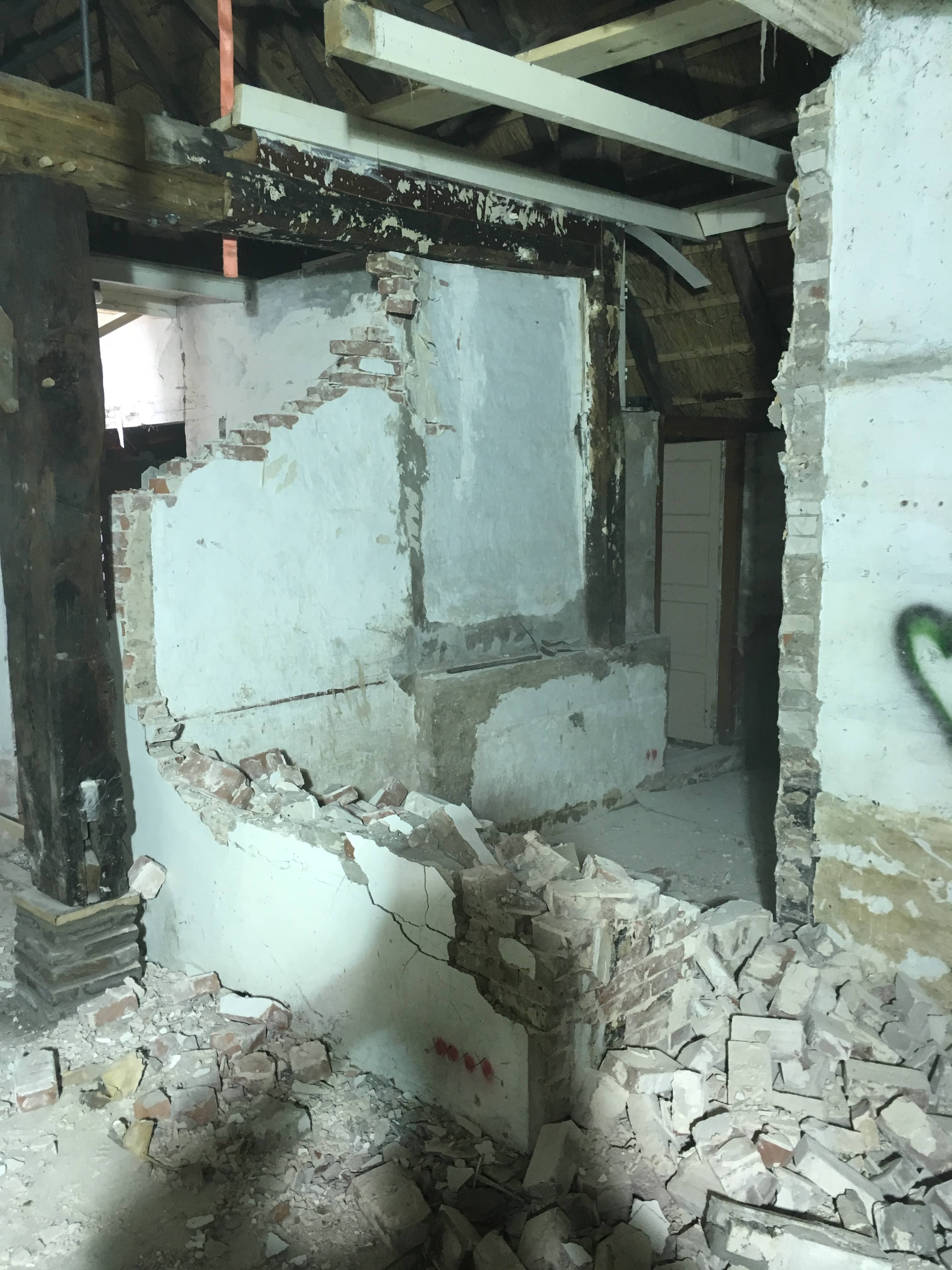 Andy: ‘De markt was in 2019 totaal overspannen. We kregen een rondleiding en daarna vijf minuten tijd om te beslissen. Er moest op zijn zachtst gezegd veel aan gebeuren. Maar voor een kant en klaar pand hadden we niet genoeg geld.’ Marjan: ‘Alles zat vol met hooi en stro. De vorige eigenaar was hier opgegroeid, er was in al die jaren weinig aan gedaan. Behalve een vernieuwing in de jaren zeventig. Dat waren ingrepen die in het nadeel van het pand waren. ‘In de bedstee stond een badkuip, de schouw was eruit gesloopt, de tegeltjes waren weg, net als veel andere originele elementen. Het allerergste was wel dat na het verwijderen van de gipsplaten van het plafond, bleek dat een deel van de ankerbalken afgezaagd waren.’