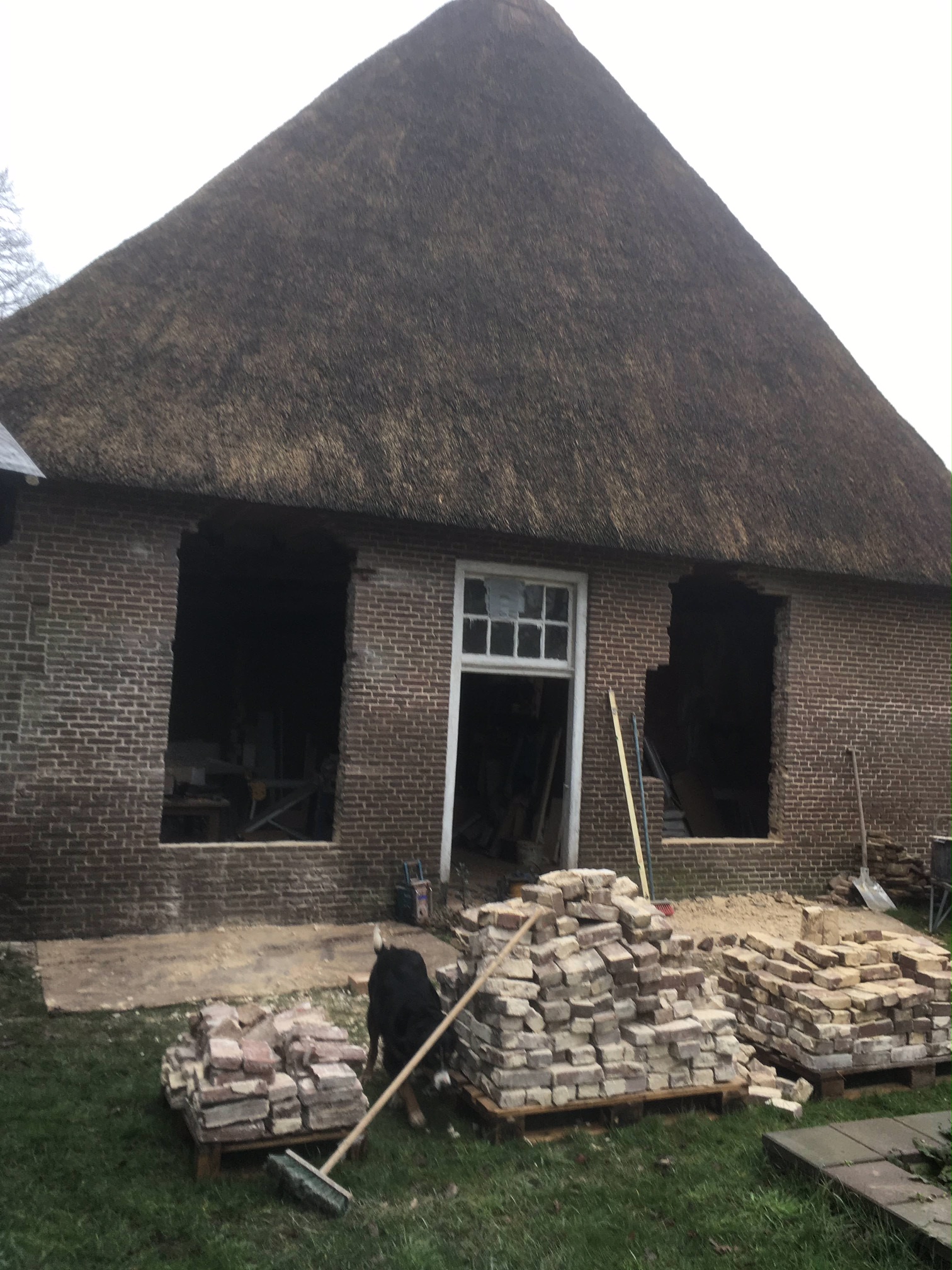 Marjan en Andy kochten het monument in 2019 en het eerste wat we deden was een omgevingsvergunning aanvragen bij de gemeente. ‘Die zeiden meteen dat we een bouwcoach nodig hadden. Die coach, Alex Krauts, heeft veel goed werk gedaan. Maar het zorgde er ook voor dat wijzelf de controle en vooral het overzicht dreigden te verliezen. De poppetjes dansen, maar je trekt niet zelf aan de touwtjes.’ Andy: ‘Alex wees ons erop dat de schuur eigenlijk de oorspronkelijke woonboerderij uit ongeveer 1760 was. Hierop besloten wij de schuur her te bestemmen tot woning voor onze, nu 25 jarige, zoon. Dan hoefden we geen kamers op zolder te maken in onze boerderij. Via de provincie zetten we een procedure in gang. Dat moest ook voor de boerderij uit 1870, waar wijzelf wilden wonen met onze dochter. Daar moest een woonbestemming op komen. Er werd een historisch rapport gemaakt en Machiel Adema van de stichting DBF heeft ons geholpen bij het aanvragen van een herbestemmingssubsidie bij de provincie.’