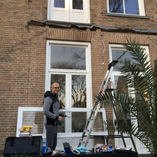 ‘Ik ben huisvestingsadviseur; ik begeleid dus geregeld nieuwbouw- en renovatieprojecten. Die werkervaring heeft mij bij ons eigen pand enorm geholpen. Ik heb me daarnaast verdiept in monumentale vraagstukken; ik heb veel aanvullende bouwkundige kennis opgedaan. Daardoor kon ik met deskundigen goed in discussie gaan. Mijn stelling is: doe het sloop- en het denkwerk zelf en laat de makers vooral het maakwerk doen. Inmiddels zijn er in de straat een aantal eigenaren die ik weer help met mijn ervaring.’