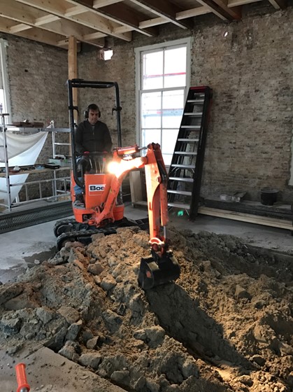 Het pand is voorzien van lagetemperatuurverwarming. ‘Dat benutten we voor verwarmen én voor koelen. Mensen realiseren zich niet dat koelen tegenwoordig minstens zo belangrijk is als verwarmen.’ Voor de koeling en verwarming wilde Jeroen een grondbron aanboren. ‘Deze optie bleef over. Het Hoogheemraadschap wilde namelijk niet dat wij een waterbron sloegen en een luchtwarmtepomp was indertijd in de binnenstad van Delft niet toegestaan. Een grondbron slaan, dat was in de binnenstad van Delft nog nergens gedaan. De binnenstad van Delft staat op archeologische grond. Voor een boring wordt niet snel toestemming gegeven. Cruciaal is de regel dat er niet geboord mag worden in ‘onberoerde grond’. Maar toen hier decennia geleden riolering werd aangelegd, werd niet zo nauw gekeken. Er was dus een deel ‘beroerde grond’. Ik heb mijn boring in de buurt van de riolering laten doen. Zo liet ik de onberoerde grond met rust. Zo kreeg ik toestemming om de grondbron te slaan. Ik heb de mensen van de gemeente uitgenodigd bij de werkzaamheden te komen kijken, dan konden ze ook ieder moment nog ingrijpen. Maar dat is niet nodig gebleken.’