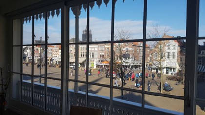 Jeroen Stolk kocht het pand aan de Markt, pal naast de Nieuwe Kerk, in 2015. Als bouwjaar staat 1870 in de boeken, maar een deel van het pand stamt uit de 14e eeuw. ‘Ik had eerder weleens in een gemeentelijk monument gewoond. Nu had ik zin in een verbouwing en ik zocht een wat groter huis. En ik vind het leuk om dingen uit te zoeken. Hier kon ik mijn energie wel in kwijt! De aanpak van dit pand is in essentie niet anders, dan andere projecten die ik als lucht- en ruimtevaartdeskundige onderhanden heb gehad. Je hebt een doel, onderzoekt de mogelijkheden en dan ga je naar een oplossing.’