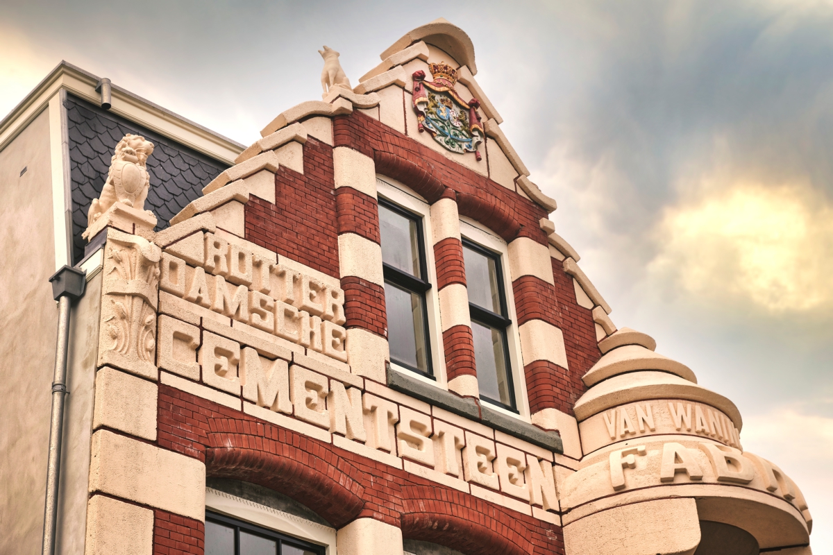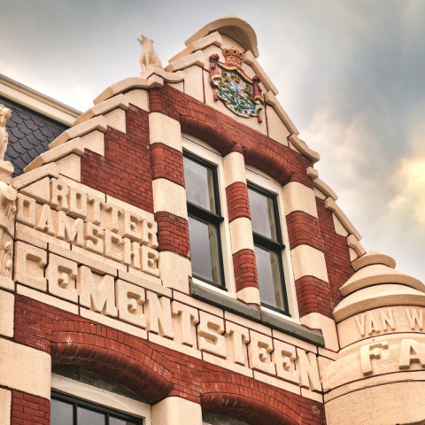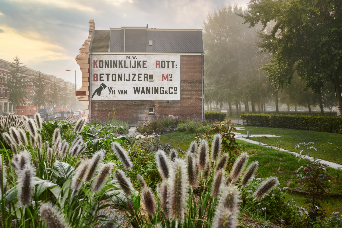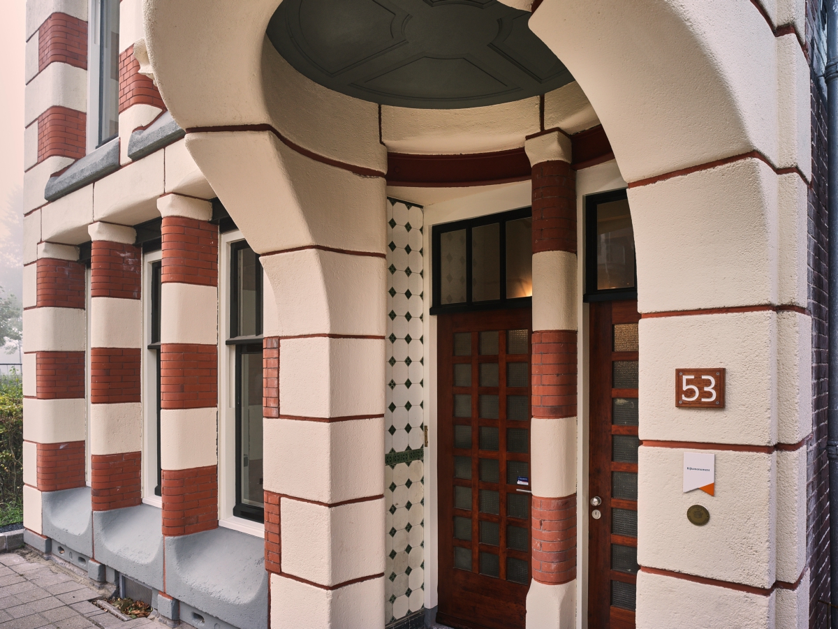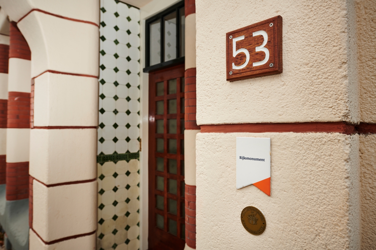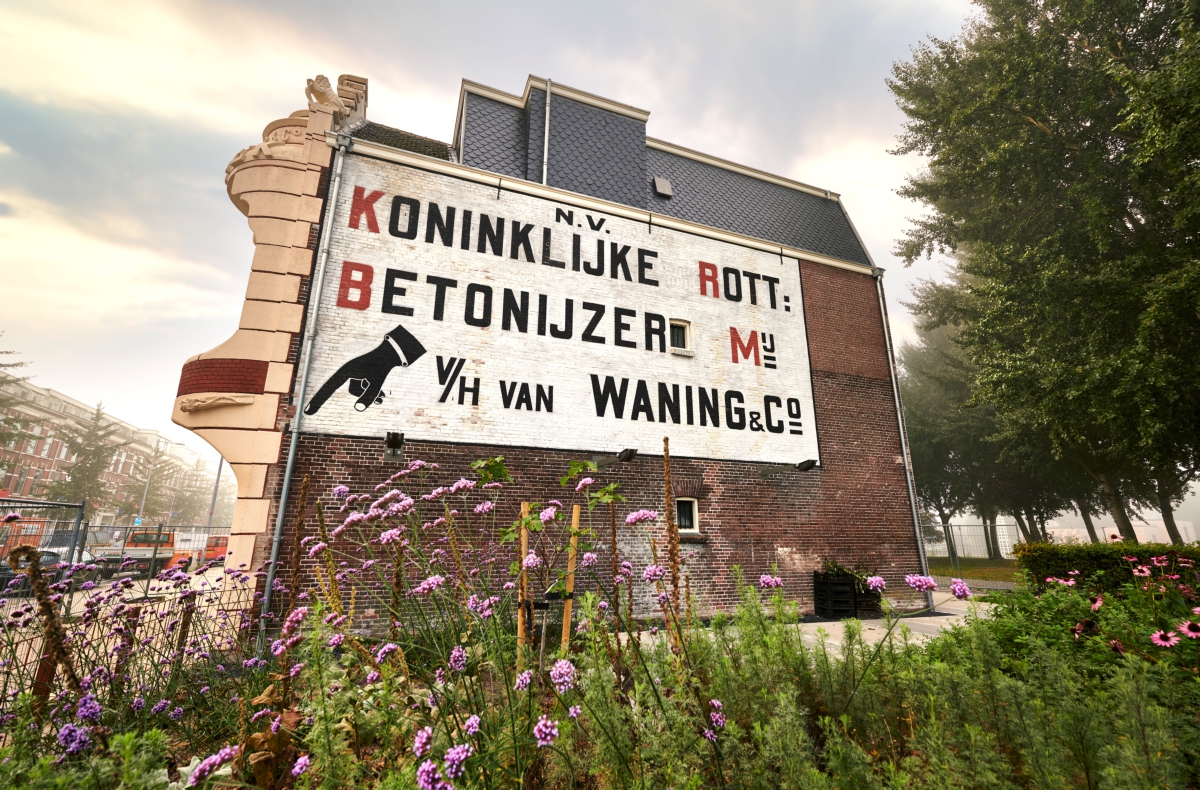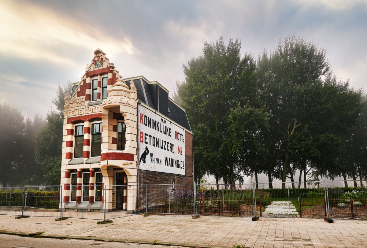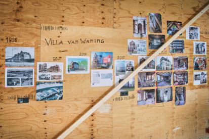 Precies zoals het een liefhebber van erfgoed betaamt, nam hij contact op met de familie Van Waning om zo veel mogelijk over het monument te weten te komen. Het resultaat is een stapel vergeelde zwart-witfoto’s, waarop tot in detail is te zien hoe het kantoor decennialang stond ‘ingepakt’ tussen opslaghallen en fabrieken én hoe het sinds de sloop van het bedrijfsterrein in 1998 alleen, verlaten maar fier het laatste restje tastbare historie van de firma in leven hield. Ook had de familie nog het originele huisnummerbordje – 53 – dat nu weer aan de gevel prijkt. ‘Van Waning was een prominente Rotterdammer’, vertelt Taapken. ‘Hij was architect, ingenieur, regent, bestuurder en uitvinder. Het verhaal van zo’n bedrijf, dat voor Rotterdam zo belangrijk is geweest - waar vind je dat nou? Ik wilde het in ere herstellen. Daarom heb ik er – vanaf het moment dat ik contact opnam met de gemeente om het te kopen tot en met het moment dat de restauratie een feit is, 12,5 jaar tijd in gestoken.’