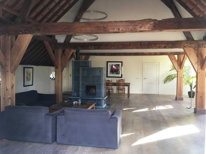 ‘Voordat we konden gaan bouwen, zijn we toch wel anderhalf jaar bezig geweest met de voorbereidingen. We gingen er toen ieder weekend naartoe, ook om te voelen wat we met het huis wilden. We spraken met iemand van de Rijksdienst voor het Cultureel Erfgoed en met de gemeente en we moesten op zoek naar een aannemer die snapte wat wij wilden. Het verbouwen is ons wel tegengevallen. Het is een heel proces geweest. Toen er na het sloopwerk nog maar een paar muren en balken overeind stonden, vroegen we ons af waar we in hemelsnaam aan begonnen waren. Maar we wilden het grondig aanpakken, omdat we dachten: ‘We kunnen het maar een keer goed doen en dat is nu.’