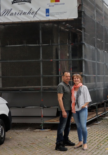 Door het enthousiasme van de onderzoekster, maar ook de betrokkenheid die veel anderen lieten zien, konden Esther en Marcel zich steeds meer met de Mariënhof verbinden. Esther: ‘Ik ben pas bijvoorbeeld mee de steiger op geweest. Daar liet een van de vakmannen zien met wat voor stenen het huis gebouwd is. Die zijn hier waarschijnlijk 400 jaar geleden ter plekke gebakken. Zo worden wij steeds trotser op ons bezit.’ Ook in de omgeving groeit de betrokkenheid. Esther: ‘Wij hebben de stichting Onderhoud Marienhof opgericht. Deze stichting zorgt voor de vergroting van de bekendheid van de Mariënhof. Zo kwam de Rotary op het idee om met haar leden geld in te zamelen om onze monumentale iepenlaan te herstellen. Die iepen zijn afgelopen maart geplant.’
