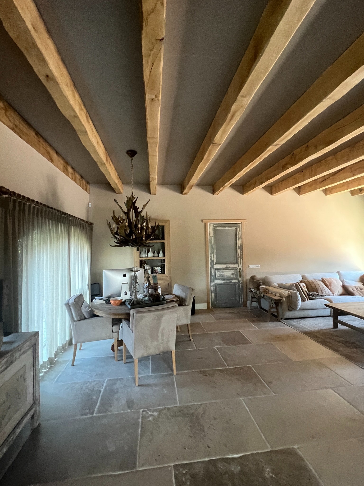 Het pand waar Kees en Joyce Marijnissen in januari 2021 eigenaar van werden, is een langgerekte boerderij uit 1884. De boer had destijds jongvee en een fruitboomgaard. Kees vertelt: ‘Het is een rijksmonument en dat was het aan de buitenkant ook nog zeker. Helemaal in orde, goed bijgehouden. Binnenin het pand werden wij dieptreurig… Het zag er weliswaar netjes uit, maar alle authentieke elementen waren uit het zicht verdwenen. Verlaagde plafonds, balken weggewerkt of beschilderd, verkeerd uitgevoerde detailleringen…’ Hier moest toch wel even over nagedacht worden.