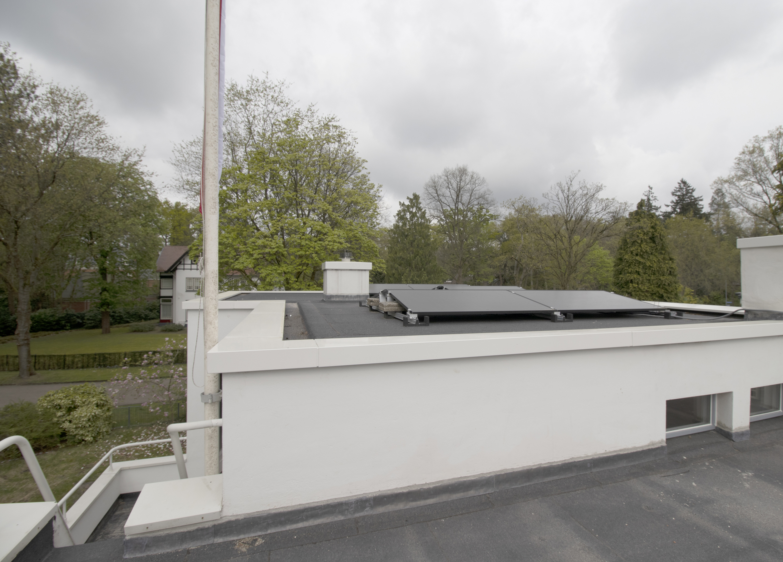 Uitdaging: hoe pas je eigentijdse technieken toe zonder afbreuk te doen aan de strakke Nieuwe Bouwen architectuur? Na grondig bouwhistorisch en bouwfysisch onderzoek is een integraal plan gemaakt.