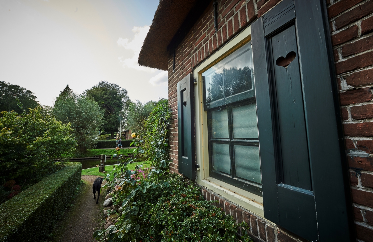 De van oorsprong westerlingen zijn in het jaar dat ze er nu wonen, helemaal ingeburgerd in Giethoorn. 'De rondvaartboten hebben mij en onze hond Nynke inmiddels al opgenomen in hun praatje', zegt Silvia lachend. 'Dan vertellen ze dat de hond wel eens in het water valt, als hij bij passerende boten om iets lekkers bedelt. Of ze vertellen dat ik hier geregeld in de tuin onkruid sta te wieden.'