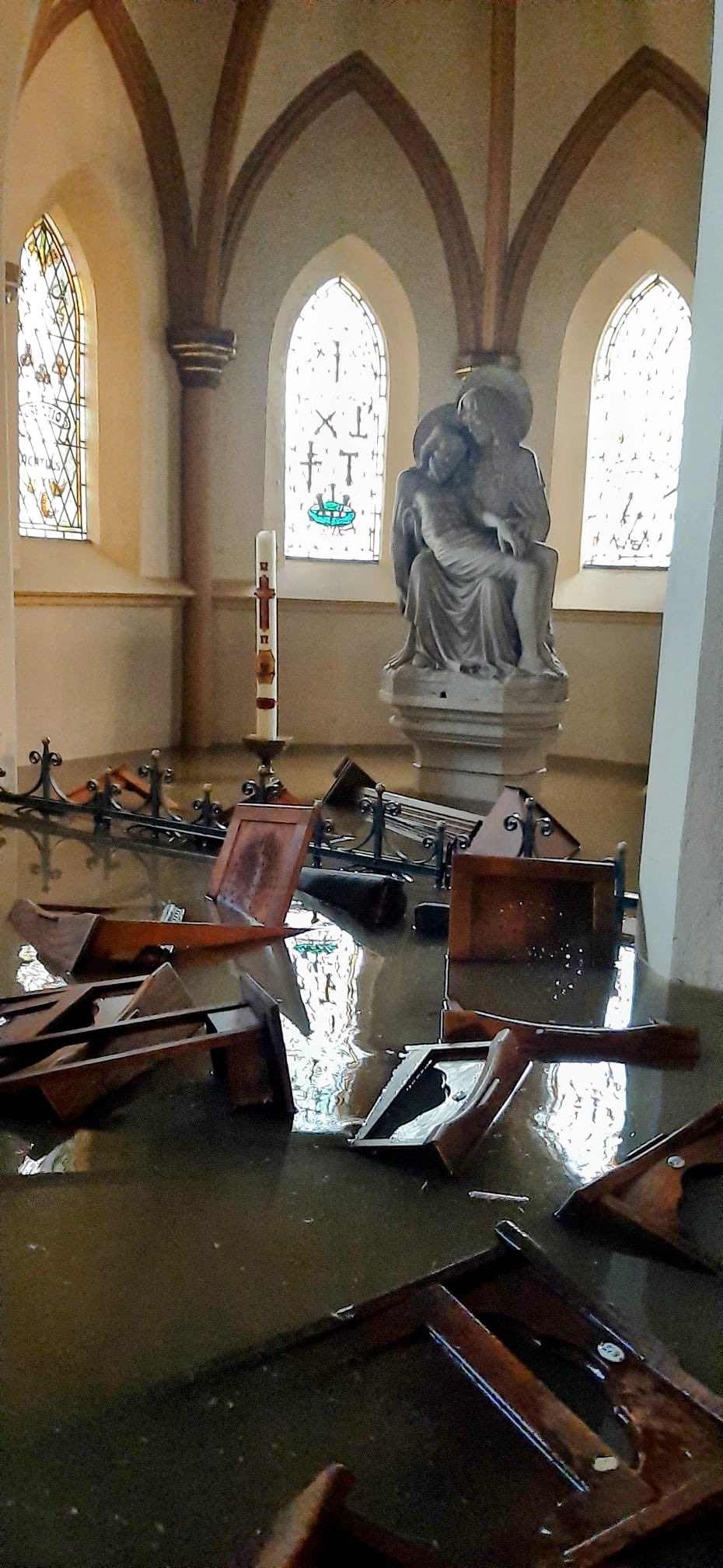 ‘Die pleisterlagen zijn vaak dampdicht. Maar door de wateroverlast is er nu meer vochttransport in de muren. De pleisterlagen raken hierdoor los. Hier heb je echt geduld nodig, veel geduld. Het kan zo een half jaar of langer duren voor de muren voldoende droog zijn. Pas daarna kan je nieuwe pleisterlagen, dampopen, gaan aanbrengen. Veel commerciële bedrijven gunnen zichzelf die tijd niet, die willen dat alles er voor hun klanten weer netjes uitziet. Maar iets langer de muren laten drogen is echt verstandiger.’ Thieu zegt: ‘Ik heb ook schade gezien bij dampopen lagen, zoals bij oude kalkmortels. Die vallen als zand van de muren af. Wij adviseren eigenaren nu: haal alles wat los zit van de muren af en laat het goed drogen. Daarna weer een dampopen, altijd dampopen!, pleisterlaag aanbrengen. Dampdichte lagen op muren aanbrengen, dat moet je niet willen. Want als je daar water achter krijgt, dan zoekt het water altijd zijn weg, desnoods hogerop.’