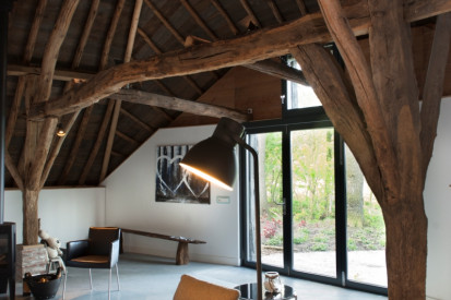Dat ze toch voor de schaapskooi vielen, kwam allereerst door de rust van de omgeving. ‘In de periode dat we nadachten over het kopen en restaureren van de schaapskooi, zijn we op vakantie geweest in Zweden’, zegt Elin. ‘De rust en de ruimte die je daar hebt, is voor Nederlandse begrippen ongekend. Althans, dat dachten we, want toen we na thuiskomst weer bij de schaapskooi gingen kijken, voelden we een vergelijkbare rust. Ik zie hier details die in het dagelijks leven aan me voorbij gaan. Dan zie ik in de verte bijvoorbeeld een prachtige lichtgele kleur. Als ik langer kijk, zie ik dat het de wilgen zijn met katjes op de takken.’ Ook in het gebouw zelf zag het stel mogelijkheden. ‘Ik zag in de schuur een loftachtig appartement voor me, een tweede huis.’ Dat Martin in de bouwval een ruwe diamant zag, heeft te maken met zijn beroep. ‘Ik ben aannemer en mijn bedrijf is gespecialiseerd in restauratieprojecten. Dankzij jaren ervaring kon ik door de rommel heen kijken.’